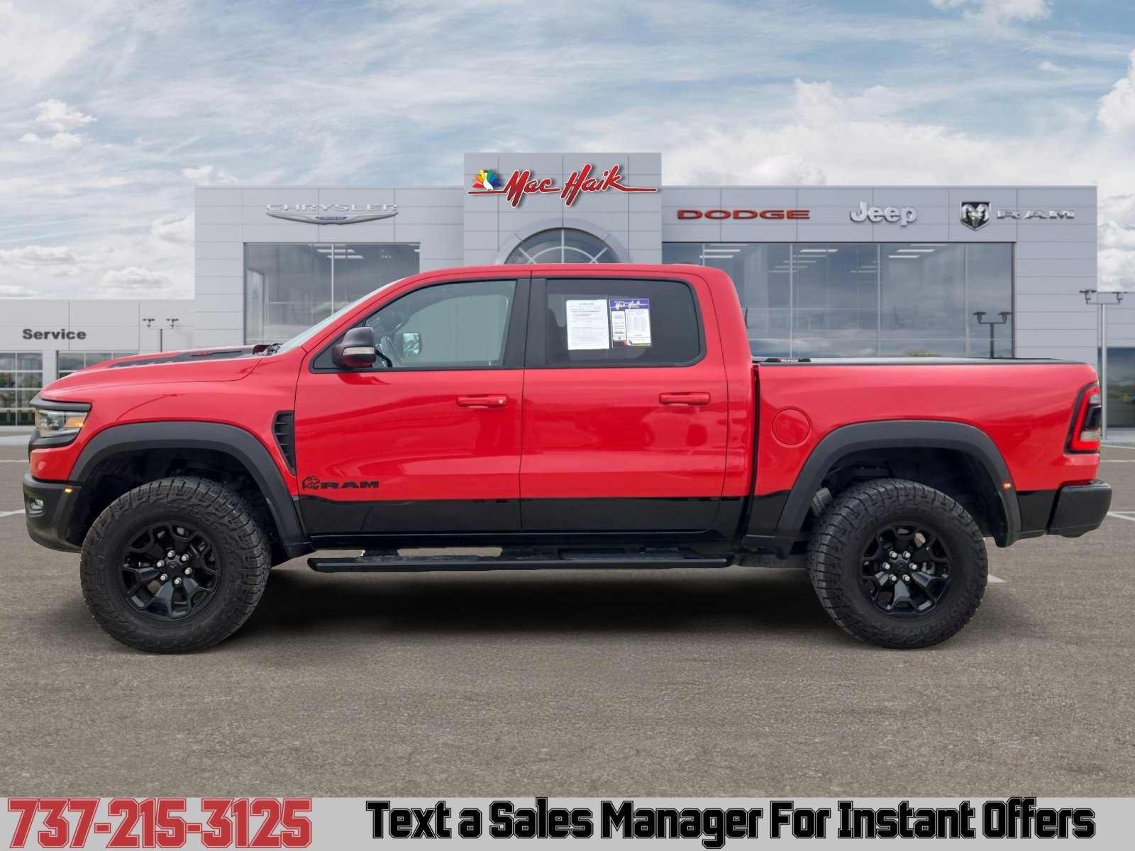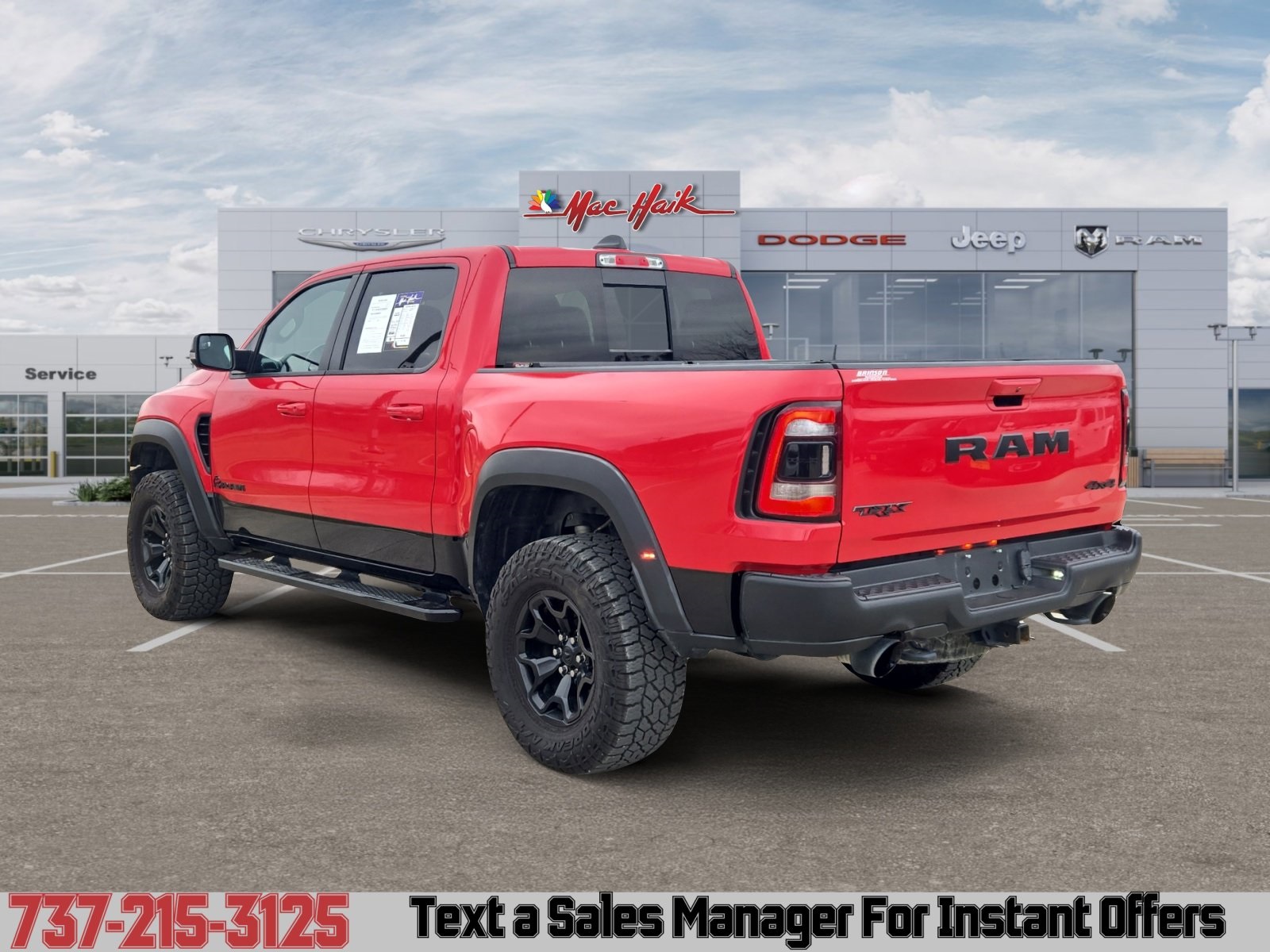Flame Red Clearcoat 2022 Ram 1500 TRX 4WD 8-Speed Automatic 6.2L Supercharged HEMI V8 SRT. Mac Haik Dodge is conveniently located close to Austin, Georgetown, Round Rock, Pflugerville, Hutto, Taylor, Temple, Belton, Fort Hood, and surrounding areas. Call us at 512-930-7900. www.machaikonline.com.