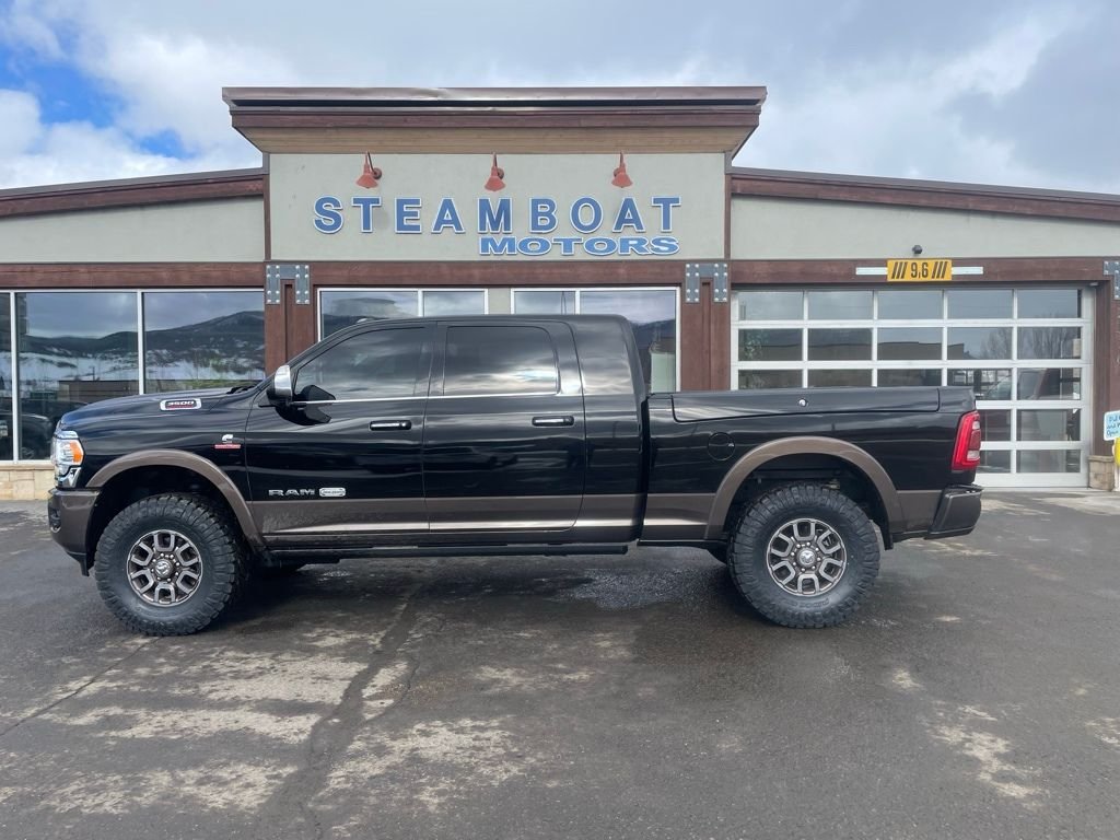 CARFAX One-Owner. Clean CARFAX. ABS brakes, Alloy wheels, Compass, Electronic Stability Control, Front dual zone A/C, GPS Navigation, Heated door mirrors, Heated Front Seats, Heated front seats, Heated rear seats, Heated Second Row Seats, Illuminated entry, Low tire pressure warning, ParkView Rear Back-Up Camera, Remote keyless entry, Traction control. Diamond Black Crystal Pearlcoat Limited Longhorn 6.7L I6 4WD Aisin 6-Speed Automatic. This excellent pre-owned vehicle is offered for sale at Steamboat Motors in Steamboat Springs, Colorado where you'll always get excellent customer service, best prices and superb selection. Call us at 970-879-8880 or stop in. We look forward to helping you!