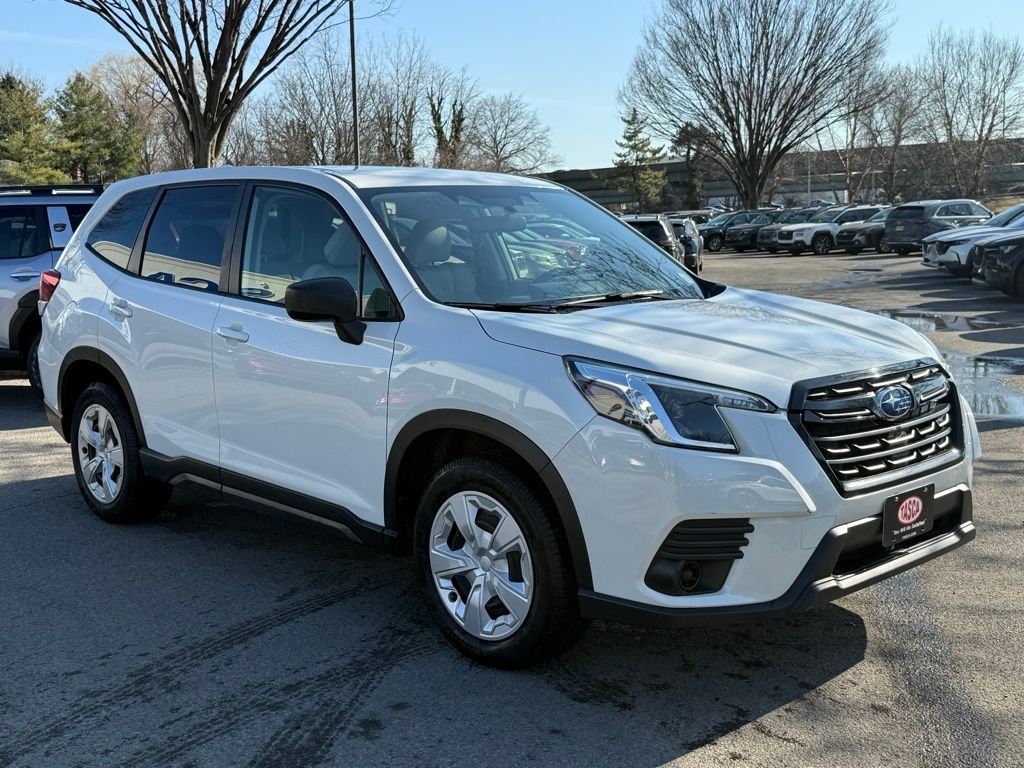 2022 Subaru Forester Base Crystal White Pearl 2.5L 4-Cylinder DOHC 16V AWD CARFAX One-Owner. Specifications, features, safety and warranty data are based on what is available as standard specs/features per trim level, for the designated model-year, and may not apply to vehicles with added packages or options. See dealer for written warranty information. Dealer makes no guarantees or warranties, either expressly or implied, with respect to the accuracy of any data listed on this page which was obtained from third party sources. All vehicles are subject to prior sale. Prices include all eligible factory rebates to dealer. Prices do not include upfits, plows, or other accessories. Price does not include applicable tax, title, license, processing and/or documentation fees, and any emissions testing charges. Doc fees vary by state (Rhode Island $399, Massachusetts $499, Connecticut $899, New York $175, Illinois $377.63, Florida $1195 doc fee and $349 electronic filing fee, Pennsylvania $477.70, Missouri $620.79, New Jersey $795). Price and availability subject to change. Manufacturer’s Suggested Retail Price (MSRP) is listed for customer comparison purposes only.