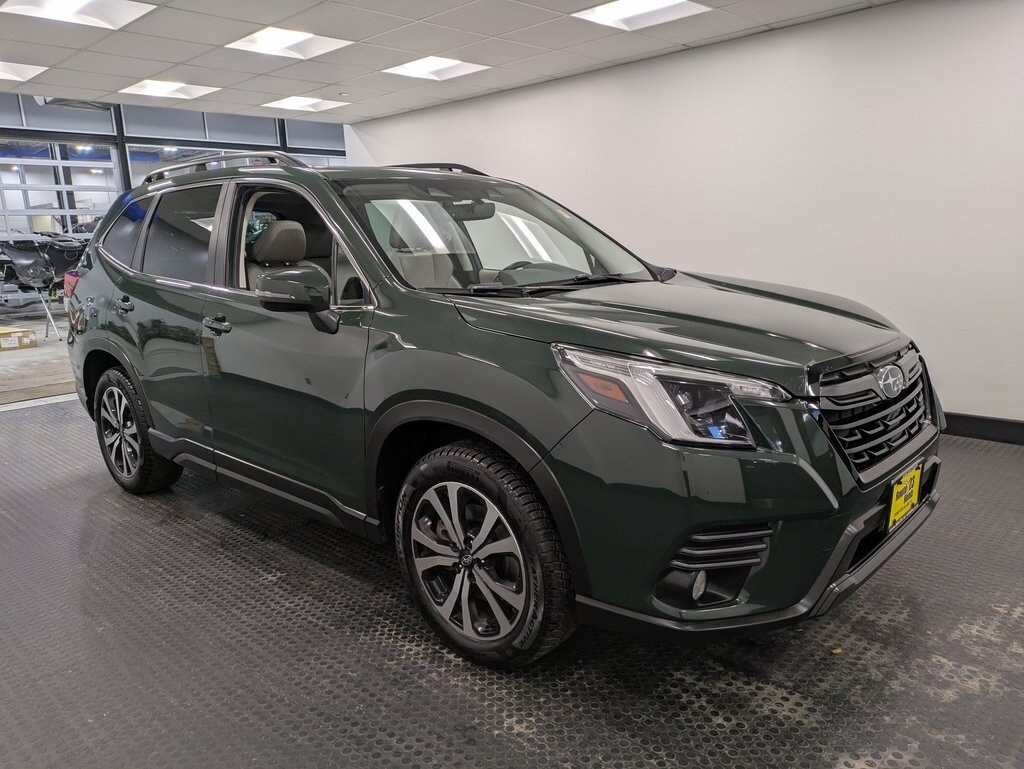 Cascade Green Silica 2022 Subaru Forester Limited Lineartronic CVT AWD 2.5L 4-Cylinder DOHC 16V. Clean CARFAX. Service and Recon for this vehicle is valued at $1961. With purchase or lease of your New, Pre-Owned or Certified Pre-Owned Honda purchased or leased from Route 23 Honda; to be done with dealer recommended services, must be done at Route 23 Honda Service Center only. Not available on prior sales; not available on Diesels, SVTs, Performance or Commercial vehicles.