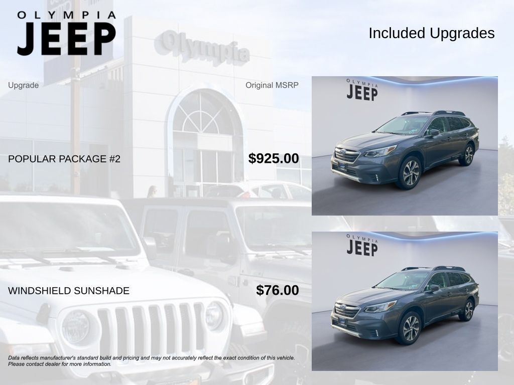This vehicle is located at Olympia Jeep. Serving Olympia, Lacey, Tumwater, Shelton, Dupont, Tacoma, Yelm, Centralia, Chehalis. The 2022 Subaru Outback Limited XT is a versatile and capable crossover that's ready to take on any adventure. With its rugged all-wheel-drive system, powerful 2.4L DOHC engine, and impressive fuel efficiency, this Outback is the perfect blend of performance and practicality. Boasting a sleek gray exterior and a spacious, well-appointed interior, the Outback Limited XT is the perfect companion for your active lifestyle. The standard features are impressive, including a state-of-the-art STARLINK 11.6" Multimedia Navigation System, a premium 12-speaker harman/kardon® audio system, and a panoramic moonroof that floods the cabin with natural light. For added convenience and comfort, this Outback is equipped with dual-zone automatic climate control, heated front and rear seats, and a power liftgate. The advanced safety technologies, including Subaru's renowned EyeSight® Driver Assist Technology, will give you peace of mind on every journey. Whether you're tackling the daily commute or embarking on a weekend getaway, the 2022 Subaru Outback Limited XT is the perfect companion. With its impressive capabilities, premium features, and exceptional value, this crossover is sure to impress. Visit Olympia Jeep today and experience the Outback for yourself.