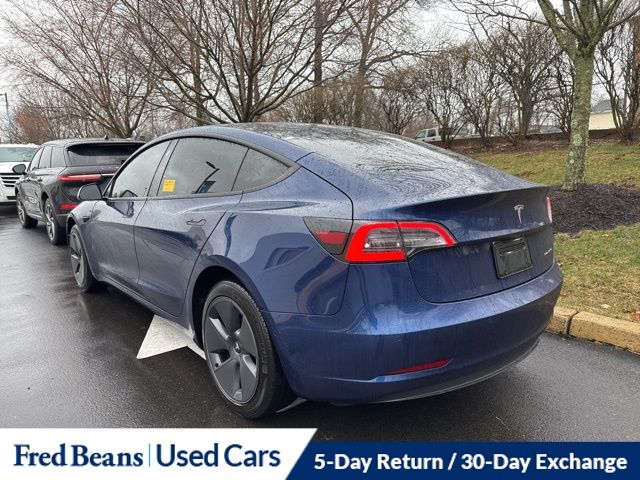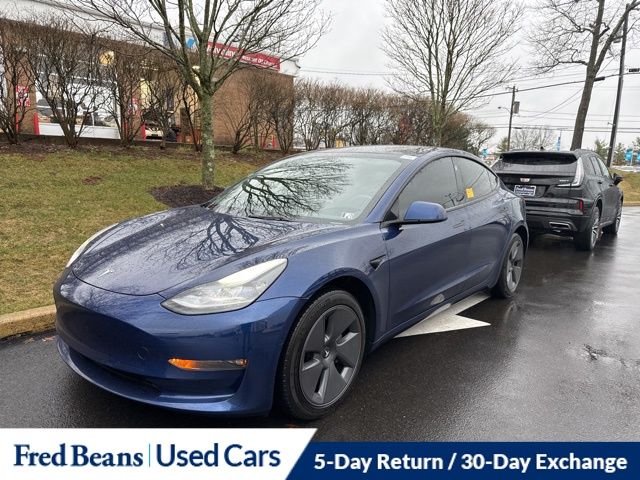 Recent Arrival! Experience the performance and innovation of the 2022 Tesla Model 3 Long Range, finished in Deep Blue Metallic and equipped with dual-motor all-wheel drive. Powered by an advanced electric drivetrain and a single-speed automatic transmission, the Model 3 Long Range delivers instant acceleration, impressive efficiency, and the confident traction of AWD, all while providing an exceptionally quiet and refined driving experience. Inside, the minimalist cabin is centered around Tesla’s signature digital interface and premium materials. Premium seat trim with heated front and rear seats, along with a heated steering wheel, ensures comfort for all passengers. Dual-zone automatic climate control maintains the ideal cabin temperature, while power-adjustable front seats with memory settings allow drivers to tailor their seating position with ease. Technology is a defining feature of the Model 3. Integrated navigation and Tesla’s advanced infotainment system provide seamless connectivity and access to vehicle functions, while the premium 14-speaker audio system delivers rich, immersive sound throughout the cabin. The sleek interior design keeps controls streamlined while maintaining a highly functional driver-focused environment. Safety and driver assistance features add confidence on every drive. Adaptive cruise control, lane departure warning, blind spot camera monitoring, and front and rear parking sensors help enhance awareness of surrounding traffic. Automatic high-beam headlights, rain-sensing wipers, and a rearview camera further contribute to convenience and safety in varying driving conditions. This Model 3 also stands out with a Clean CARFAX, local trade history, and an odometer reading 21,315 miles below market average. The exterior is complemented by 18-inch Aero wheels that contribute to improved efficiency and aerodynamic performance. This vehicle is Triton Certified and includes a 12-month / 12,000-mile comprehensive warranty for added peace of mind. Every pre-owned vehicle also undergoes a 127-point inspection and includes a 5-day return and 30-day exchange policy. The Auto Rewards Program adds additional ownership value with a $50 service gift certificate, complimentary Pennsylvania state safety inspections, local merchant discounts, and the opportunity to earn up to $2,000 toward your next vehicle simply by servicing with Fred Beans.