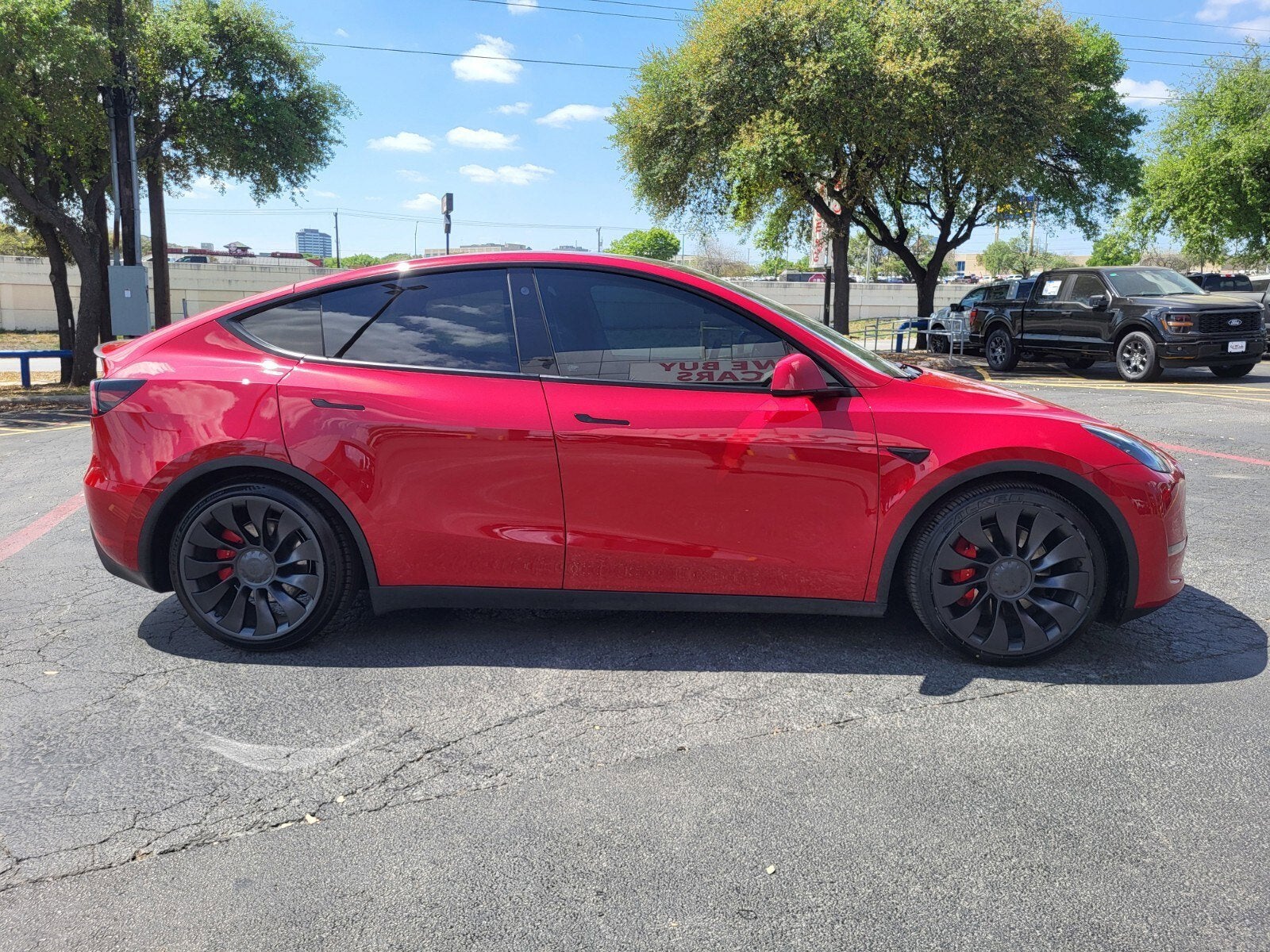 Look at this 2022 Tesla Model Y Performance. Its Automatic transmission and Electric engine will keep you going. This Tesla Model Y features the following options: Wireless Phone Connectivity, Window Grid Antenna, Wheels: 21 x 9.5 Fr & 21 x 10.5 Rr Uberturbine, w/Steering Wheel Controls, Vision Park Assist Front And Rear Parking Sensors w/Rear Camera, Valet Function, Trunk/Hatch Auto-Latch, Trip Computer, Transmission: 1-Speed Automatic, and Traffic-Aware Cruise Control. Test drive this vehicle at Red McCombs Ford, 8333 W Interstate 10, San Antonio, TX 78230.