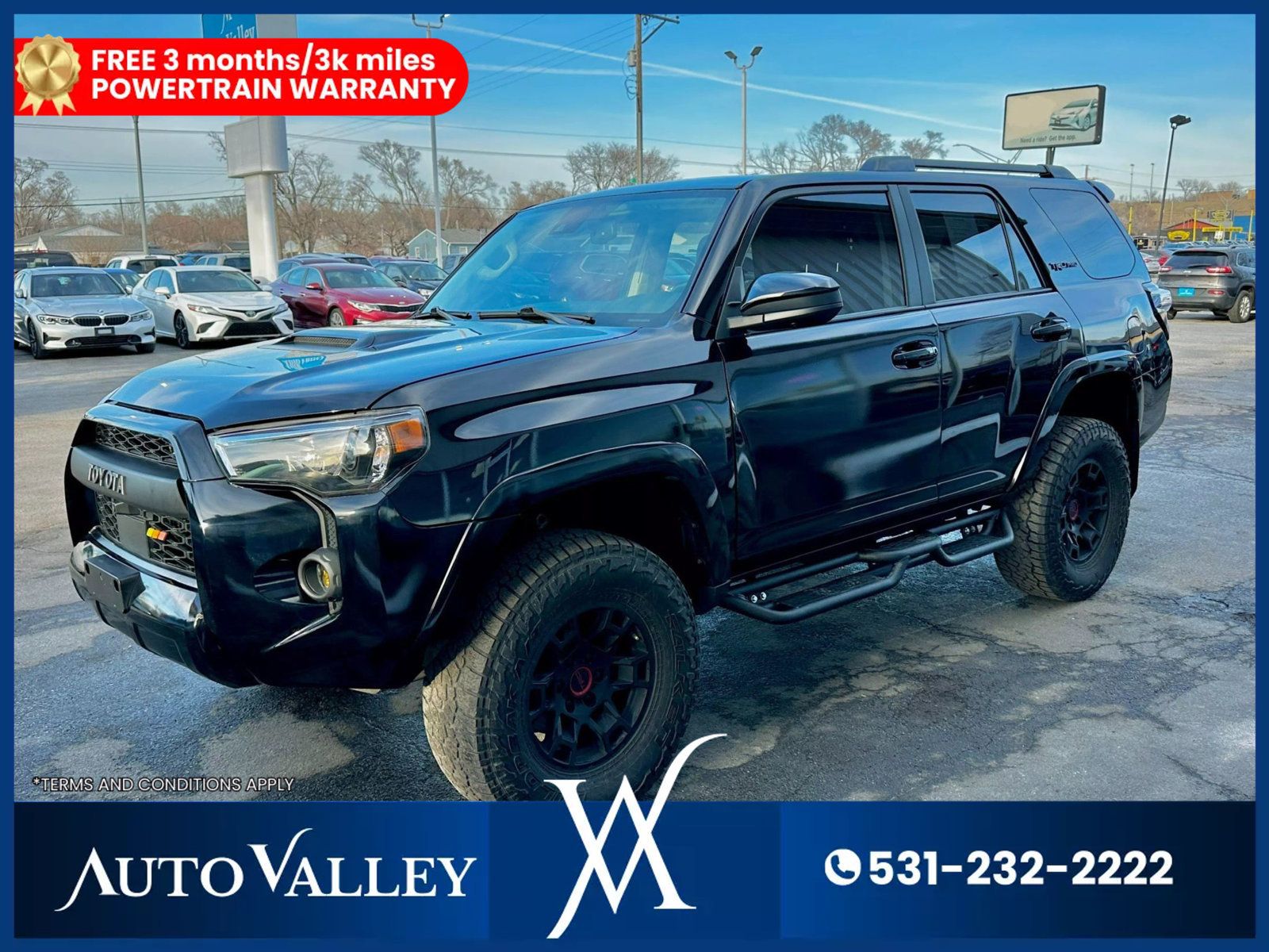 The 2022 Toyota 4Runner TRD Pro 4WD is built for adventure with rugged off-road capabilities, thanks to its TRD-tuned FOX shocks, skid plates, and part-time 4WD system. Its powerful 4.0L V6 engine ensures strong performance on any terrain. The bold, aggressive exterior features a unique TRD Pro grille, black alloy wheels, and a roof rack for extra gear. Inside, enjoy premium comfort with SofTex-trimmed seats, an 8-inch touchscreen with Apple CarPlay and Android Auto, and a JBL premium audio system. Advanced safety features like Toyota Safety Sense P enhance every journey with confidence. It comes with a FREE 3 MONTHS/3 K MILES POWERTRAIN Warranty All of our vehicles go through a 100+ point Inspection completed by our certified mechanics and the inspection reports are available upon request. Financing - We have partnerships with lending institutions that can finance both in-state and out-of-state customers that should fit your needs. Warranties - (Service Contracts) - We offer affordable service contract plans for peace of mind! These service contracts range from Powertrain to 60 months of Platinum coverage! At Autovalley , we make car buying simple, straightforward, and enjoyable. Visit our showroom today or call (531) 232-2222 to schedule an appointment and test drive. Upon request, we offer a complimentary vehicle history report on every vehicle in stock. This car has a Nebraska-branded title.
