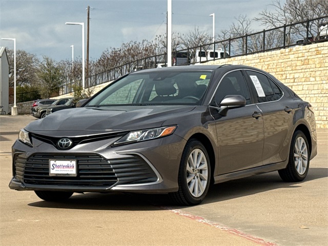 CARFAX One-Owner. 2022 Toyota Camry LE 4D Sedan LE Predawn Gray Mica 2.5L I4 DOHC 16V 8-Speed Automatic FWD This vehicle comes well equipped with Camry LE, 4D Sedan, 2.5L I4 DOHC 16V, 8-Speed Automatic, FWD, and Ash w/Fabric Seat Trim. Clean CARFAX. 28/39 City/Highway MPG At SHOTTENKIRK Toyota located in Granbury, TX all of our Pre-Owned vehicles go through a 100 point plus inspection. The oil and filter are changed, complete brake inspection, tire rotation, safety inspection and all fluid levels are topped off. If we find anything that needs attention we address the issue and fix it. So buy with confidence that you are getting a quality vehicle. We can do a complete walk around for you over the phone. Trade ins are always welcomed. We offer financing from over 25 finance and credit unions locally and nationally. We serve all of Granbury as well as the surrounding cities of Aledo, Fort Worth, Arlington, and Burleson. Payment does not include state required tax, title, license and registration fees. Not all buyers will qualify.