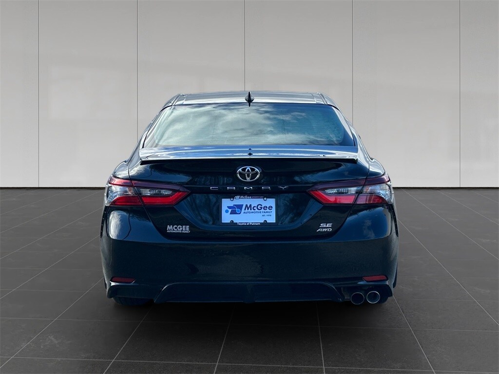 Black Cloth, ABS brakes, Active Cruise Control, Alloy wheels, Electronic Stability Control, Front dual zone A/C, Heated door mirrors, Illuminated entry, Low tire pressure warning, Remote keyless entry, Traction control. Here at McGee Toyota of Putnam, we take pride in being a family owned business, with over 40 years of automotive experience in Massachusetts! In that time, we have served your friends, family, and relatives with great car buying experiences. Our state of the art facility extends to everything from our new and used vehicle showroom, to our service and waiting areas. Let us assist in all your car buying needs in Putnam, near Boston and Southbridge, MA. As well as, car services near Putnam, CT. CARFAX One-Owner. Clean CARFAX. 2022 Toyota Camry SE Black 2022 Toyota Camry SE AWD 8-Speed Automatic 2.5L I4 DOHC 16V McGee Toyota of Putnam is proud to present you with another True Market Priced Pre-Owned Vehicle. This 2022 Toyota Camry SE is loaded with the following Factory Options: Black Cloth, ABS brakes, Active Cruise Control, Alloy wheels, Electronic Stability Control, Front dual zone A/C, Heated door mirrors, Illuminated entry, Low tire pressure warning, Remote keyless entry, and Traction control.