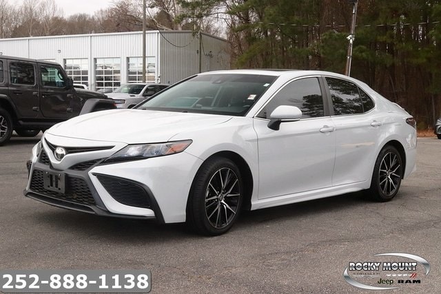 Clean Carfax. 2022 Toyota Camry FWD 8-Speed Automatic 2.5L I4 DOHC 16V Cloth. Recent Arrival! Odometer is 13851 miles below market average! 28/39 City/Highway MPG. At Rocky Mount Chrysler Dodge Jeep Ram, you can trust in the quality of our expansive selection of Used Cars, call today for a test drive! Special financing rates available. Price indicated assumes eligibility - inclusion of $1000 internet discount - $1000 trade in assistance and $500.00 Chrysler credit financing - reductions indicated in price, plus tax, tag, dealer installed equipment and $679 closing fee. Rocky Mount Chrysler Dodge Jeep Ram FIAT is dedicated to your satisfaction before, during, and after your purchase. We'll go the extra mile to take care of you.