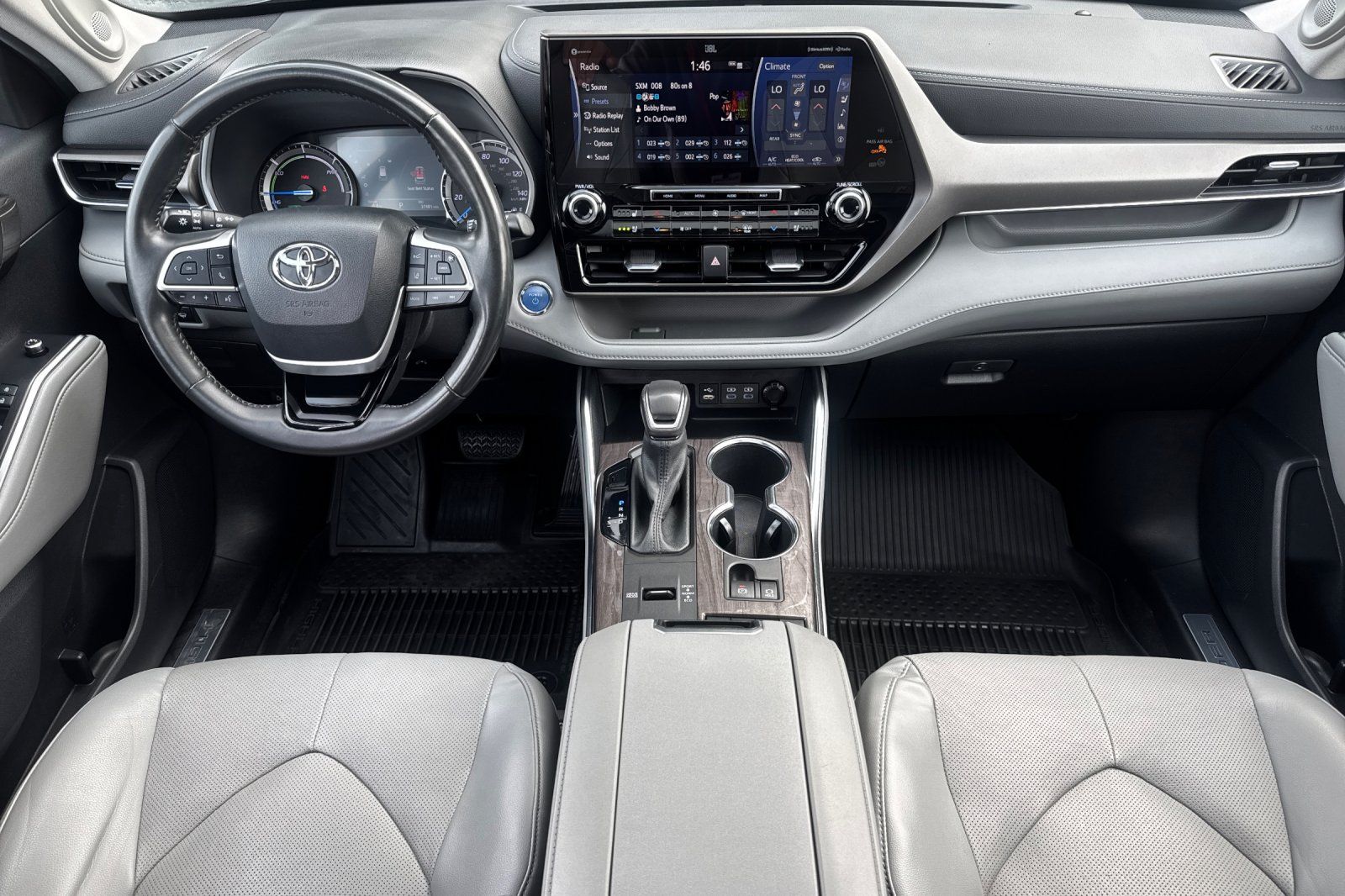 2022 Toyota Highlander Hybrid Limited eCVT. 1 year or 15000 miles of Complimentary ToyotaCare Maintenance, All Weather Floor & Cargo Liner (TMS), Birds Eye View w/12.3" Screen, Panoramic View Monitor, Radio: JBL Premium Audio w/12.3" Touchscreen. Clean CARFAX. CARFAX One-Owner. Odometer is 11563 miles below market average! 35/34 City/Highway MPG AWD 2.5L I4 PDI Hybrid DOHC 16V LEV3-SULEV30 186hp. Birds Eye View w/12.3" Screen (Panoramic View Monitor and Radio: JBL Premium Audio w/12.3" Touchscreen), All Weather Floor & Cargo Liner (TMS), 11 Speakers, 20" Chrome Wheels, 3rd row seats: split-bench, 4-Wheel Disc Brakes, ABS brakes, Air Conditioning, Alloy wheels, AM/FM radio: SiriusXM, Apple CarPlay/Android Auto, Auto High-beam Headlights, Auto-dimming Rear-View mirror, Automatic temperature control, Axle Ratio TBD, Brake assist, Bumpers: body-color, Chrome wheels, Delay-off headlights, Driver door bin, Driver vanity mirror, Dual front impact airbags, Dual front side impact airbags, Electronic Stability Control, Emergency communication system: Safety Connect with 1-year trial, Exterior Parking Camera Rear, Four wheel independent suspension, Front anti-roll bar, Front Bucket Seats, Front Center Armrest, Front dual zone A/C, Front fog lights, Front reading lights, Fully automatic headlights, Garage door transmitter: HomeLink, Heated door mirrors, Heated Front Bucket Seats, Heated front seats, Heated steering wheel, Illuminated entry, Knee airbag, Leather Seat Trim, Leather Shift Knob, Low tire pressure warning, Memory seat, Navigation system: Dynamic Navigation (3-year trial), Occupant sensing airbag, Outside temperature display, Overhead airbag, Overhead console, Panic alarm, Passenger door bin, Passenger vanity mirror, Power door mirrors, Power driver seat, Power Liftgate, Power moonroof, Power passenger seat, Power steering, Power windows, Radio: JBL Premium Audio System, Rear air conditioning, Rear window defroster, Rear window wiper, Reclining 3rd row seat, Remote keyless entry, Roof rack: rails only, Security system, Speed control, Speed-sensing steering, Split folding rear seat, Spoiler, Steering wheel mounted audio controls, Telescoping steering wheel, Tilt steering wheel, Traction control, Trip computer, Turn signal indicator mirrors, Variably intermittent wipers, and Ventilated front seats.