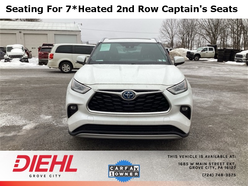 White 2022 Toyota Highlander Hybrid Platinum 4D Sport Utility AWD 2.5L I4 PDI Hybrid DOHC 16V LEV3-SULEV30 186hp eCVT 35/34 City/Highway MPG CARFAX One-Owner.