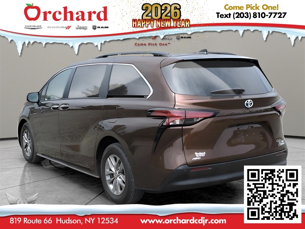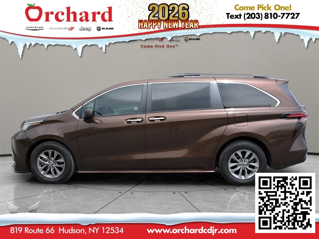 2022 Toyota Sienna XLE 7 Passenger CARFAX One-Owner. 125 Point Inspection, AWD, 17" Alloy Wheels, 3rd row seats: split-bench, 8 Speakers, Apple CarPlay/Android Auto, Auto High-beam Headlights, Automatic temperature control, Front dual zone A/C, Front Heated Bucket Seats, Fully automatic headlights, Leather Shift Knob, Leather steering wheel, Power driver seat, Power moonroof, Power passenger seat, Rear air conditioning, Rear dual zone A/C, Reclining 3rd row seat, Remote keyless entry, SofTex Seat Trim (EA). 35/36 City/Highway MPG Odometer is 11828 miles below market average! Why Buy from Orchard CDJR? At Orchard Chrysler Dodge Jeep Ram, we believe car buying should be as refreshing as a crisp fall harvest. As your hometown dealer, we’re rooted in customer service and here to help you find the perfect vehicle to fit your lifestyle. Hand-Picked Deals – Fair pricing and transparent offers you can trust. Financing for Every Basket – From top-tier credit to fresh starts, we’ll help you grow your options. Service That Bears Fruit – Our certified team services all makes and models, keeping you on the road season after season. Local Roots, Wide Reach – Proudly serving Columbia, Greene, Albany, Rensselaer, Dutchess, and Ulster Counties. At Orchard CDJR, you don’t just pick a car – you pick a dealership that puts people first.