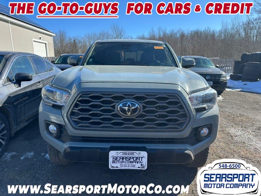This 2022 Toyota Tacoma 4WD is available at Searsport Motor Company in Searsport, Maine. It features a 3.5L V6 engine, automatic transmission, and Four Wheel Drive. The vehicle is in stock and available for purchase.