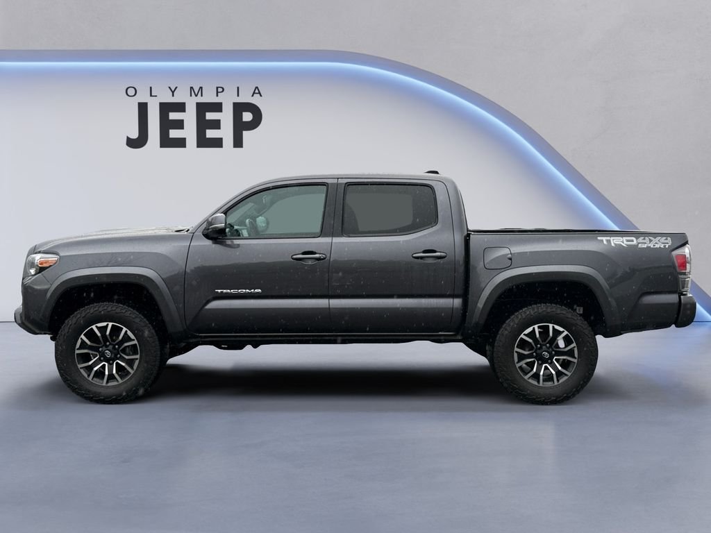 This vehicle is located at Olympia Jeep. Serving Olympia, Lacey, Tumwater, Shelton, Dupont, Tacoma, Yelm, Centralia, Chehalis. This 2022 Toyota Tacoma SR5 V6 is a rugged and capable mid-size pickup that's ready to take on any adventure. With its powerful 3.5L V6 engine, 4-wheel drive, and impressive towing capacity, this Tacoma is built to handle tough jobs and challenging terrain with ease. The exterior features a bold, confident design with a mesh front grille, color-keyed overfenders, and a hard tri-fold tonneau cover that adds both style and functionality. The interior is equally impressive, with premium cloth seats, dual-zone climate control, and a suite of advanced technology features including Apple CarPlay, Android Auto, and a rearview camera. But this Tacoma isn't just about good looks and impressive specs – it's also packed with advanced safety features like Blind Spot Monitoring, Rear Cross-Traffic Alert, and Toyota's renowned Safety Sense suite of driver-assist technologies. With its one-owner, clean CARFAX history, you can trust that this Tacoma has been well-cared for and is ready to provide years of reliable service. Whether you're looking for a capable work truck, a versatile adventure vehicle, or a family-friendly daily driver, this 2022 Toyota Tacoma SR5 V6 is a fantastic choice. With its impressive performance, exceptional utility, and comprehensive suite of features, it's the perfect blend of capability and convenience. Thank you for shopping at Olympia Jeep! For car buyers who are looking for an honest and transparent experience, look no further. The Bruce Titus Automotive Group is a family-owned and operated business that puts customers first. Our goal is to provide a comfortable, hassle-free experience for our customers and to form relationships that last a lifetime. Our commitment to you does not end when you purchase your vehicle. Our transparent service and ownership experience help keep you and your vehicle safe on the road for years to come. Plus you'll save an average additional tax savings over the competition of $300 when you buy from Olympia Jeep in the Olympia Auto Mall.