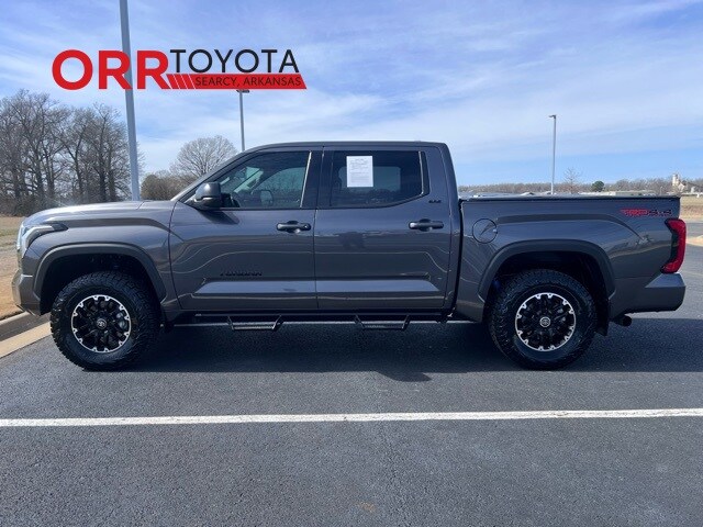 Magnetic Gray Metallic 2022 Toyota Tundra SR5 4WD 10-Speed Automatic 3.4L V6 This Tundra SR5 is nicely equipped with TRD Off-Road Package (Bedside TRD Off Road Decal, Black Grille w/Chrome Surround, Front & Rear Mud Guards, Front Spoiler Delete, Heated Outside Mirrors, and TRD Off-Road Suspension w/Bilstein Shocks), 4WD, Black w/Fabric Seat Trim, Heated Leather Steering Wheel, Predator Drop Step (TMS), 18" Alloy Wheels, 3.31 Axle Ratio, 4-Way Adjustable Front Bucket Seats, 4-Wheel Disc Brakes, 9 Speakers, ABS brakes, Air Conditioning, All Weather Floor Liners (TMS), Alloy wheels, AM/FM radio: SiriusXM, Apple CarPlay/Android Auto, Auto High-beam Headlights, Automatic temperature control, Black Tailgate Insert (TMS), Brake assist, Bumpers: body-color, Delay-off headlights, Driver door bin, Driver vanity mirror, Dual front impact airbags, Dual front side impact airbags, Electronic Stability Control, Emergency communication system: Safety Connect with 1-year trial, Exterior Parking Camera Rear, Fabric Seat Trim, Front anti-roll bar, Front Bucket Seats, Front Center Armrest, Front fog lights, Front reading lights, Front wheel independent suspension, Fully automatic headlights, Heated door mirrors, Illuminated entry, Knee airbag, Low tire pressure warning, Occupant sensing airbag, Outside temperature display, Overhead airbag, Overhead console, Panic alarm, Passenger door bin, Passenger vanity mirror, Power door mirrors, Power steering, Power windows, Radio data system, Radio: Audio Multimedia System, Rear reading lights, Rear step bumper, Rear window defroster, Remote keyless entry, Safety Connect, Security system, Speed control, Speed-sensing steering, Split folding rear seat, Stainless Steel Door Edge Guard (TMS), Steering wheel mounted audio controls, Tachometer, Telescoping steering wheel, Tilt steering wheel, Traction control, Trip computer, Turn signal indicator mirrors, Variably intermittent wipers, and Voltmeter. Back up camera, Bluetooth, lift kit, Keyless entry.