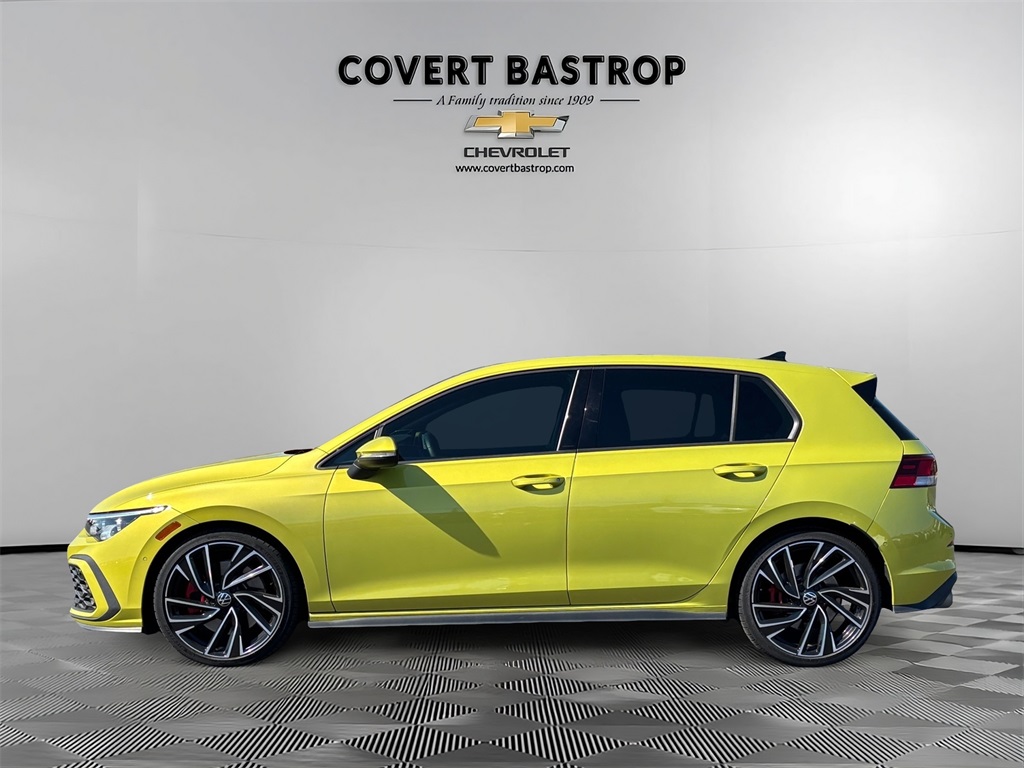 Experience the pinnacle of the hot-hatch segment with this highly sought-after 2022 Volkswagen Golf GTI Autobahn. Powering this legend is a 2.0L TSI DOHC turbocharged engine, delivering a thrilling 241 horsepower and 273 lb-ft of torque, channeled to the front wheels via a lightning-fast 7-Speed DSG Automatic with Tiptronic. This combination not only rockets the car to 60 mph in the mid-5-second range but also maintains an efficient 25/34 City/Highway MPG. The Autobahn trim redefines premium performance. Command the road with a Sport steering wheel, Speed-sensing steering, and Adaptive suspension (DCC) that lets you tailor the ride dynamics to your exact preference. The exterior stands out with its sporty spoiler and eye-catching 19" x 8J 2-Tone Machined Alloy Wheels. Inside is a technology and luxury haven. The advanced Radio: MIB3 Discover Pro w/10" Touchscreen Navi is paired with a premium Harman Kardon Speakers audio system. Critical driving data is projected onto the windshield by the Heads-Up Display. Comfort is paramount with Perforated Vienna Leather Seating Surfaces and truly four-season comfort thanks to Heated/Cooled Seats (Actively Ventilated Front Seats), a Heated steering wheel, and even Heated rear seats. Enjoy the open air through the Power moonroof: Panoramic glass roof. Safety is enhanced with Active Blind Spot Monitor and Forward collision: FCW w/Autonomous Emergency Braking mitigation. This recent arrival perfectly blends thrilling performance with executive-level amenities. This exceptional hot hatch is available for immediate viewing and test drives. We proudly serve clients throughout Bastrop, TX (78602), including Cedar Creek, TX (78612), Elgin, TX (78621), Smithville, TX (78957), and the greater Austin, TX (78704) area.