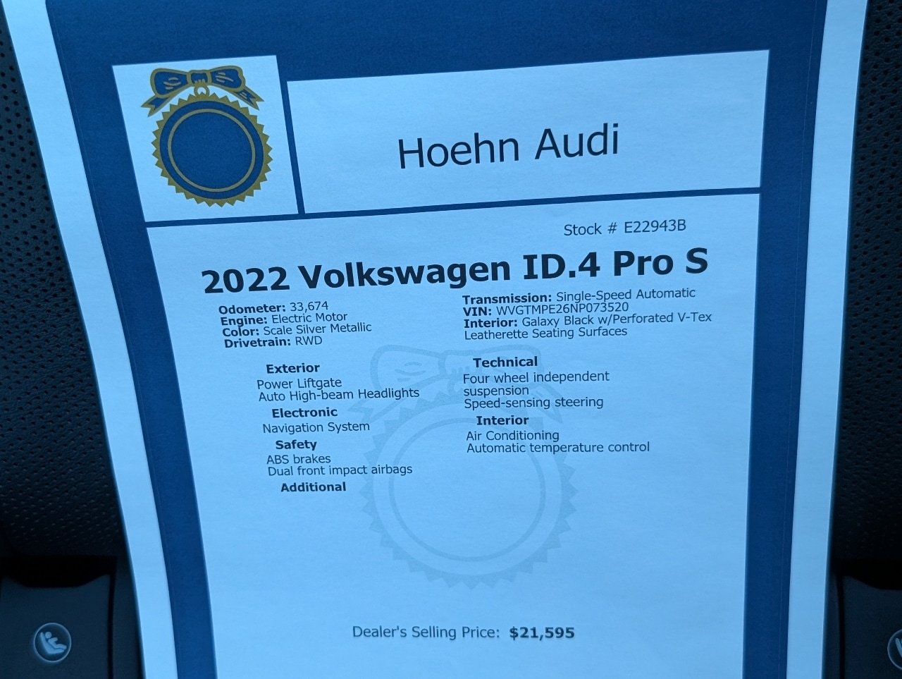 Audi Carlsbad is excited to present this.. Scale Silver Metallic 2022 Volkswagen ID.4 Pro S Electric Motor RWD CARFAX One-Owner. Clean CARFAX. We hand select each pre-owned vehicle here at Audi Carlsbad. This includes a careful and comprehensive inspection process to ensure this is one of the best pre-owned vehicles on the market! We are excited to meet you, come on by and check this one out for yourself today! Audi Carlsbad is proudly recognized as a 2024 Audi Magna Society Winner-a designation given to all the nation!