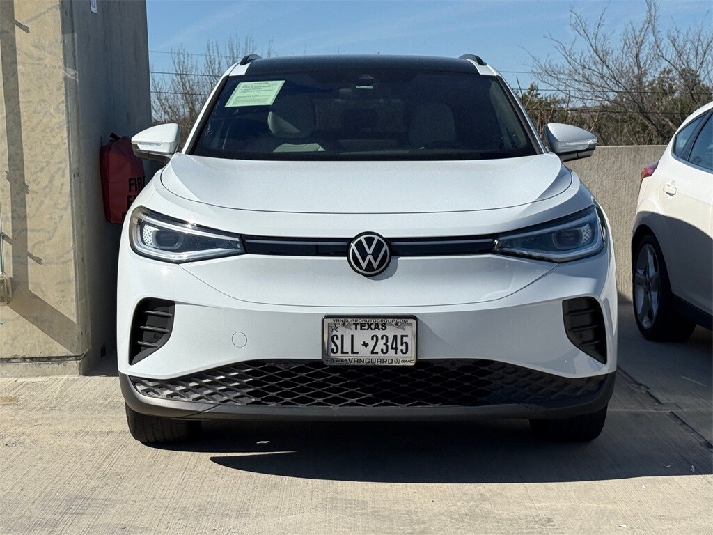 Glacier White 2022 Volkswagen ID.4 Pro S Odometer is 5735 miles below market average! CARFAX One-Owner. Clean CARFAX. This vehicle comes with the following features and options : 3.90 Axle Ratio, 4 Wheel Independent Suspension, 7 Speakers, ABS brakes, Air Conditioning, Alloy wheels, Auto High-beam Headlights, Auto-dimming Rear-View mirror, Automatic temperature control, Brake assist, Bumpers: body-color, Delay-off headlights, Driver door bin, Driver vanity mirror, Driver's Seat Mounted Armrest, Dual front impact airbags, Dual front side impact airbags, Electronic Stability Control, Emergency communication system: VW Car-Net services (capabilities require enrollment or subscription), Exterior Parking Camera Rear, Four wheel independent suspension, Front anti-roll bar, Front Bucket Seats, Front dual zone A/C, Front fog lights, Front reading lights, Fully automatic headlights, Heated door mirrors, Heated Front Seats, Heated front seats, Heated steering wheel, Illuminated entry, Low tire pressure warning, Memory seat, Navigation System, Occupant sensing airbag, Outside temperature display, Overhead airbag, Overhead console, Panic alarm, Passenger door bin, Passenger seat mounted armrest, Passenger vanity mirror, Perforated V-Tex Leatherette Seating Surfaces, Power door mirrors, Power driver seat, Power Liftgate, Power passenger seat, Power steering, Power windows, Radio data system, Radio: Discover Pro Max w/12" Touchscreen Nav, Rain sensing wipers, Rear anti-roll bar, Rear reading lights, Rear seat center armrest, Rear window defroster, Rear window wiper, Remote keyless entry, Roof rack: rails only, Speed control, Speed-sensing steering, Split folding rear seat, Spoiler, Steering wheel mounted audio controls, Telescoping steering wheel, Tilt steering wheel, Traction control, Trip computer, Turn signal indicator mirrors, Variably intermittent wipers, and Wheels: 19" 5-Spoke 2-Tone Machined Alloy.