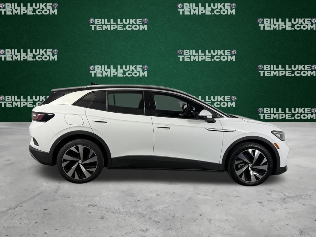 BUYBACK! No hidden fees! All reconditioning costs are fully included in our prices. Re-purchased by the manufacturer! Discounted price: most vehicles come with a 12-month manufacturer warranty! See below for additional details. One owner! Panoramic roof, navigation, leather, 19" wheels, blind spot monitor, lane keep assist and 12" touchscreen display! This 2022 Volkswagen ID.4 is a premier all-electric SUV finished in Glacier White with a Black Roof and a modern Lunar Gray Leatherette interior. As a "Pro S" with the Statement and Gradient packages, it offers the ultimate ID.4 experience, combining a generous driving range with a suite of premium luxury features designed for the electrified future. The interior is a high-tech sanctuary, featuring the Discover Pro Max 12-inch touchscreen with navigation, wireless smartphone integration, and multi-color adjustable ambient lighting. Comfort is a priority with V-Tex leatherette seating, a heated steering wheel, and a massaging driver's seat to ease the afternoon commute. Safety is world-class, evidenced by its 5-Star Overall Vehicle Score and standard IQ.DRIVE technology, which includes Travel Assist (semi-automated driving), Adaptive Cruise Control, and Lane Assist. With 30.3 cubic feet of cargo space (expanding to 64.2) and a tight turning radius, this ID.4 is as practical as it is innovative.