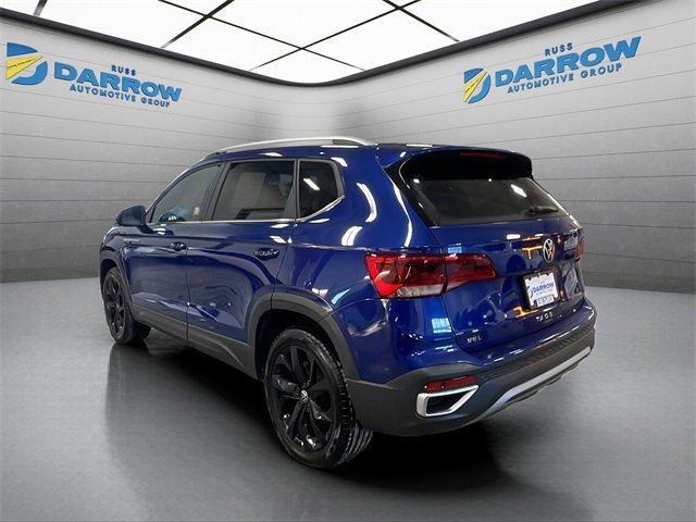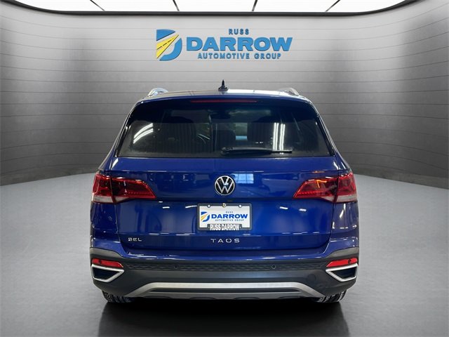 2022 Volkswagen Taos 1.5T SEL Dusk Blue Metallic FWD 1.5L I4 Turbocharged DOHC 16V LEV3-SULEV30 158hp 8-Speed Automatic with Tiptronic Android Auto & Apple CarPlay, Bluetooth connection for mobile phone, rear back-up camera with display, heated front seats, heated steering wheel, Auto High-beam Headlights, automatic temperature control, electronic stability control, front dual zone A/C, heated door mirrors, power door mirrors, power driver seat, remote keyless entry, steering wheel mounted audio controls. CARFAX One-Owner. Includes exclusive membership status in the Russ Darrow Rewards Program. Earn points for every dollar spent on goods and services at any Russ Darrow location, plus extra points if purchasing packages with the Finance office. Use these points on your next new or used vehicle purchase at any Russ Darrow Dealership. You will earn $10 for every 1,000 points redeemed, up to a maximum redemption of $500 per transaction. For more detailed information visit russdarrowrewards.com. *tax, title, license, fees and any dealers Ad not included in sale price.