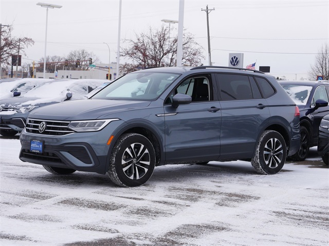 AWD, All wheel drive, Apple Car Play, Android Auto, rearview camera system, Bluetooth, USB ports, AWD, Exterior Parking Camera Rear, Forward collision: FCW w/Autonomous Emergency Braking mitigation, Heated Front Bucket Seats, Heated front seats, Radio: Composition Color AM/FM. Platinum Gray Metallic 2022 Volkswagen Tiguan 2.0T S AWD 2.0L TSI DOHC 8-Speed Automatic with Tiptronic. Odometer is 24897 miles below market average! 22/29 City/Highway MPG. You can't buy the wrong car! This vehicle qualifies for our 7 day exchange program! Ask dealer for details.
