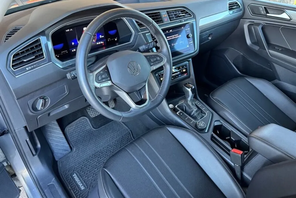 Introducing the stylish and versatile 2022 Volkswagen Tiguan SE 4Motion in Platinum Gray Metallic with a sleek Titan Black interior! This beauty is equipped with a reliable 2.0L Turbo I4 engine that delivers 184hp and 221ft. lbs. of torque, ensuring a smooth and powerful driving experience. The factory default features on this Tiguan are sure to impress, including a Rubber Mat Kit for Two Row Seating to keep your interior looking sharp and a handy Roadside Assistance Kit for added peace of mind on your adventures. With just under 23,000 miles on the odometer, averaging less than 6,000 miles per year, this Tiguan is a low-mileage gem. Plus, you'll enjoy excellent fuel efficiency with 22 MPG in the city and 29 MPG on the highway, saving you time and money at the pump. In excellent overall condition, this 2022 Volkswagen Tiguan SE 4Motion is ready to hit the road in style and comfort. Don't miss out on the opportunity to make it yours today!