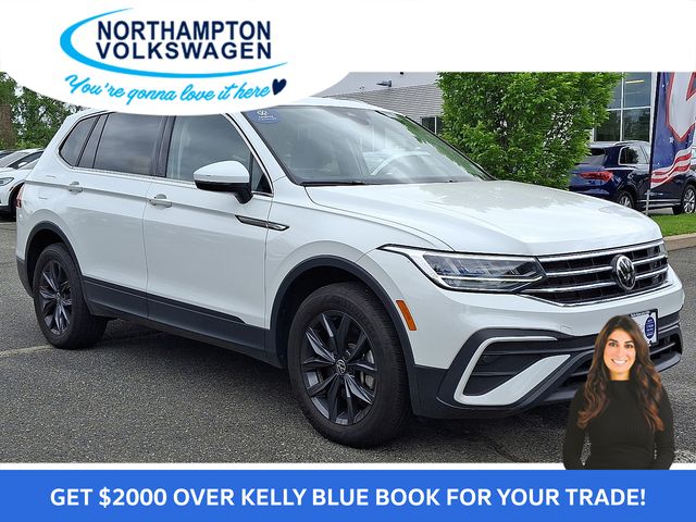 2022 Volkswagen Tiguan 2.0T SE. Only 21,000 miles remainder of factory warranty. Plus additional 2yr / 24K CPO warranty! Pure White with Titan Black leather interior. CARFAX One-Owner. Clean CARFAX. Lube, oil & filter service, full detail, recent local trade in, new tires, new brakes, all wheel drive, navigation, back-up camera, remainder of factory warranty, Bluetooth handsfree phone, Apple CarPlay/Android Auto, all power options, local trade, serviced here, panoramic sunroof, auto-dimming rearview mirror, heated mirrors, remote start, power liftgate, lane departure warning, lane-keep assist, AWD.