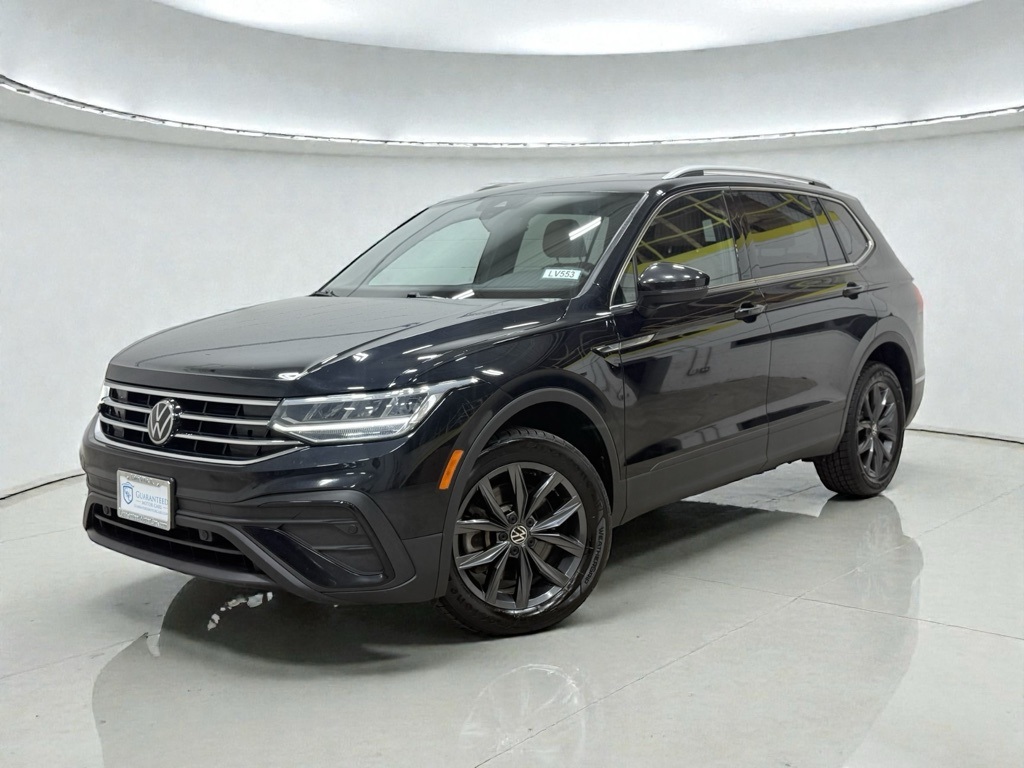 Introducing a pristine Carfax 1-Owner 2022 Volkswagen Tiguan 2.0T SE FWD, a true embodiment of sophistication and modern comfort. This striking SUV stands out with its sleek Deep Black Pearl exterior complemented by an exquisite Cinnamon interior. Its 2.0L 4-cylinder engine ensures an optimal balance of power and efficiency, making it the perfect companion for both city commuting and weekend getaways. Step inside to experience the seamless blend of practicality and luxury with its Cinnamon perforated V-Tex leatherette seating surfaces. This Tiguan offers three-row seating, providing ample space for family and friends. Convenience and technology are at your fingertips with features like active cruise control, Bluetooth connectivity, and remote start. Drivers appreciate innovations such as forward collision warning and lane departure warning, providing extra confidence on the road. This Tiguan is equipped with LED headlights that guarantee clear visibility, even on the darkest roads. Rain-sensing wipers and heated seats add a touch of comfort and adaptability, regardless of weather conditions. Its sporty aesthetic is further enhanced by a rear roof-edge spoiler and roof rack base carrier bars, making it both stylish and functional. Enjoy peace of mind with lane keep assist, ensuring you stay securely within your lane as you journey in style and comfort with this top-tier Volkswagen Tiguan.