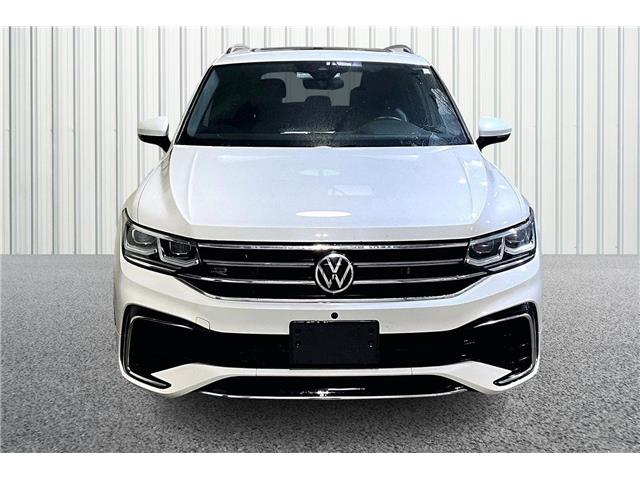 Experience the 2022 Volkswagen Tiguan Highline R-Line, a white AWD SUV that delivers confident handling and performance. This vehicle is designed for those who demand quality and precision in their drive.