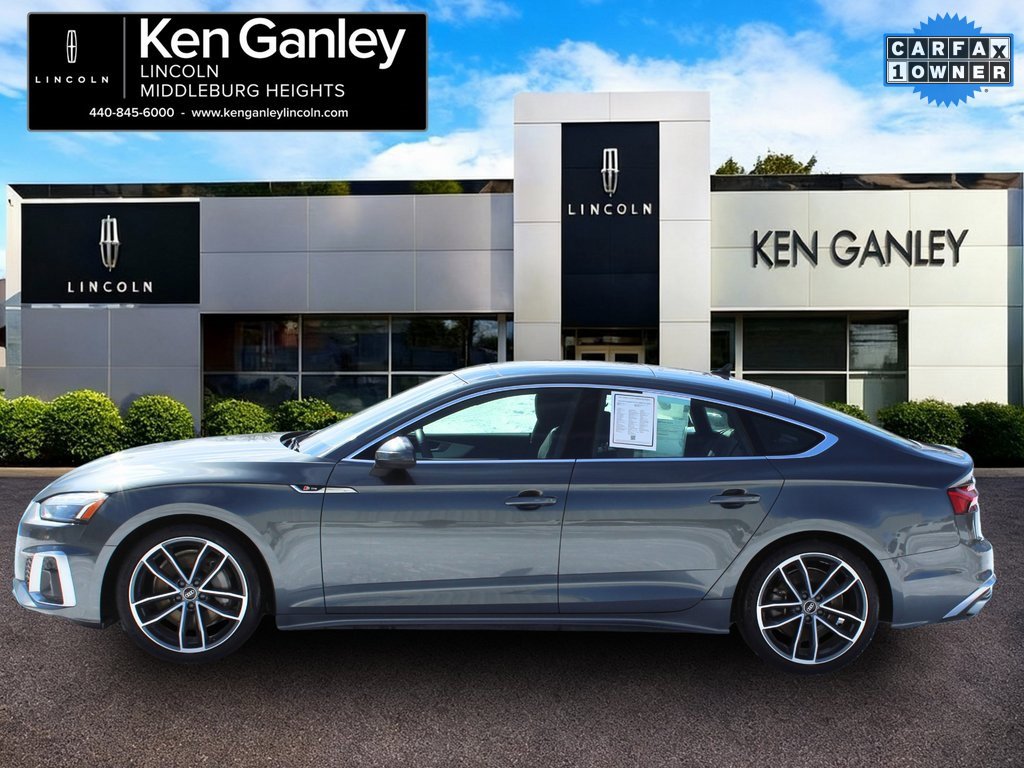 CARFAX One-Owner. Clean CARFAX. 24/32 City/Highway MPG. On the Lot at Ken Ganley Lincoln Middleburg Heights. This Audi A5 Sportback S line Premium Plus Sportback is a hybrid vehicle with a gray exterior and black interior. It features a range of advanced technology and safety features, including Audi Virtual Cockpit Plus, Audi Side Assist with Pre Sense Rear, and Bang & Olufsen Sound System with 3D Sound. The car is known for its stylish design, comfortable driving position, and exceptional handling, making it a standout in its class.