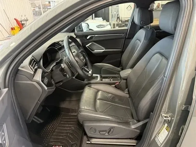 Discover the 2023 Audi Q3 Premium, a stylish and versatile SUV that combines performance with modern technology. Finished in striking Mythos Black Metallic, this used model offers a sleek, sophisticated look with a durable exterior that stands out on the road. With a 2.0-liter turbocharged four-cylinder engine delivering 228 horsepower and 251 lb-ft of torque, it provides a dynamic driving experience. The Quattro all-wheel drive system ensures excellent traction and stability, whether you're navigating city streets or tackling rougher terrain. Equipped with an 8-speed automatic transmission with Tiptronic, this SUV offers smooth shifts and enhanced control. Its practical size, seating for five, and 4-door layout make it ideal for daily commutes or weekend adventures, all while maintaining impressive fuel efficiency with 21 mpg city and 28 mpg highway. Inside, the Audi Q3 Premium features a well-appointed interior with leather seats, heated for added comfort during colder months. The sunroof/moonroof invites natural light, while rear A/C keeps all passengers comfortable. Modern convenience is at your fingertips with Apple CarPlay, Bluetooth, keyless entry, and a backup camera that makes parking easier. Safety features include a blind spot monitor, collision warning, cross traffic alert, fog lights, and a suite of driver assistance systems that enhance confidence behind the wheel. This SUV's condition, with over 62,000 miles, shows it has been well maintained, ready to serve its next owner with style and reliability.
