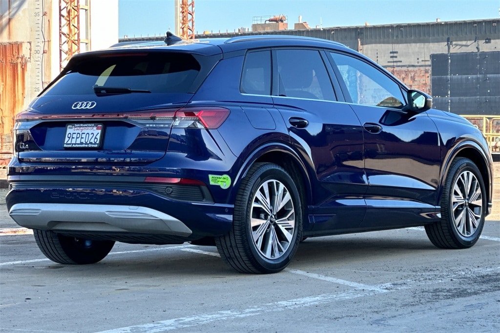 Navarra Blue Metallic 2023 Audi Q4 e-tron Premium Plus RWD. CARFAX One-Owner. Clean CARFAX. Adaptive Cruise Assist w/Lane Guidance, Audi Connect PLUS, Audi MMI Navigation Plus, Audi Virtual Cockpit Plus, Convenience Package, Heated Steering Wheel, LED Interior Lighting Plus Package, Park Assist Plus, Premium Plus, SONOS Premium Sound System, Traffic Sign Recognition. 112/94 City/Highway MPG. The Royal Motor Sales dealerships began in 1947, when Walter Anderson started a body shop and opened a pre-owned car sales center in San Francisco, CA. Walter Anderson, In 1956, acquired the Volvo franchise. Royal was one of the first Volvo dealers in the country. Royal Auto Group now has four automotive dealerships and a state of the art collision center in San Francisco. The dealership franchises include: Audi, VW, Volvo, and Mazda. In 2020, the valued team members at Royal sold over 4,000 new and pre-owned cars and serviced more than 40,000. Our company history reinforces the importance of the cornerstone foundations of our business and success, which are: Integrity, Efficiency, Hard Work, Customer Service, and Loyalty. They are our trademarks! Mazda San Francisco is dedicated to your satisfaction before, during, and after your purchase. We'll go the extra mile to take care of you.
