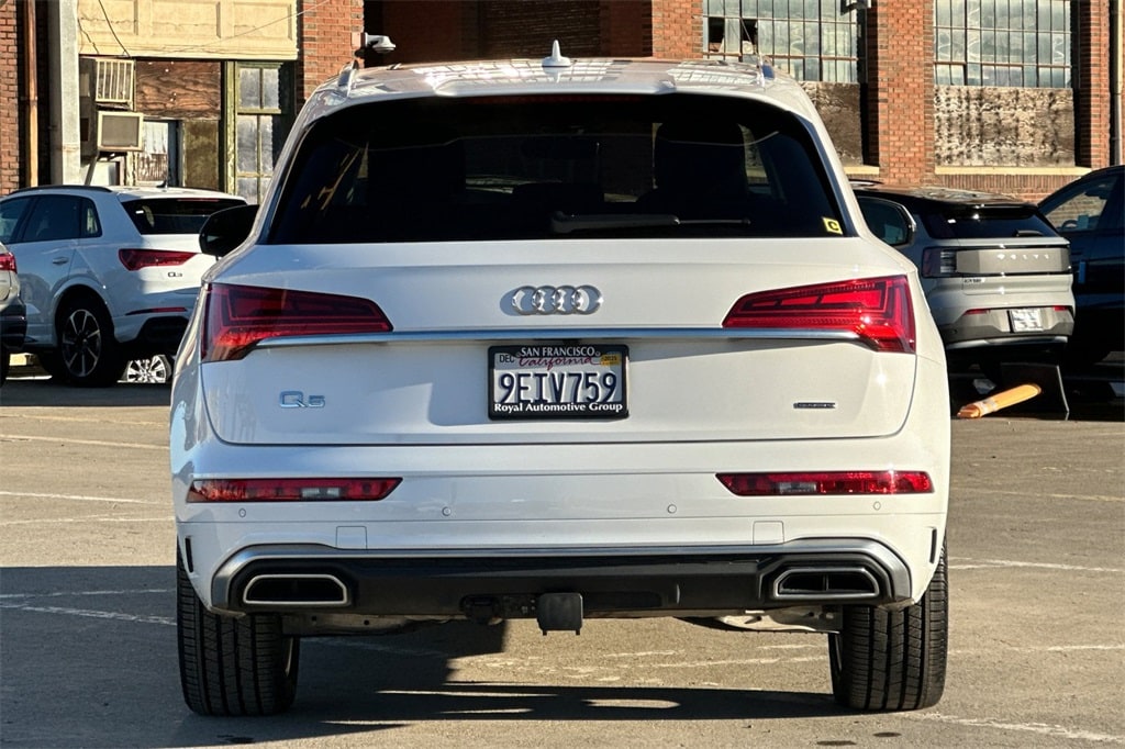 Recent Arrival! Ibis White 2023 Audi Q5 45 S line Premium Plus AWD. CARFAX One-Owner. Clean CARFAX. Odometer is 9291 miles below market average! Priced below KBB Fair Purchase Price! 22/29 City/Highway MPG. The Royal Motor Sales dealerships began in 1947, when Walter Anderson started a body shop and opened a pre-owned car sales center in San Francisco, CA. Walter Anderson, In 1956, acquired the Volvo franchise. Royal was one of the first Volvo dealers in the country. Royal Auto Group now has four automotive dealerships and a state of the art collision center in San Francisco. The dealership franchises include: Audi, VW, Volvo, and Mazda. In 2020, the valued team members at Royal sold over 4,000 new and pre-owned cars and serviced more than 40,000. Our company history reinforces the importance of the cornerstone foundations of our business and success, which are: Integrity, Efficiency, Hard Work, Customer Service, and Loyalty. They are our trademarks! Volvo Cars San Francisco is dedicated to your satisfaction before, during, and after your purchase. We'll go the extra mile to take care of you.
