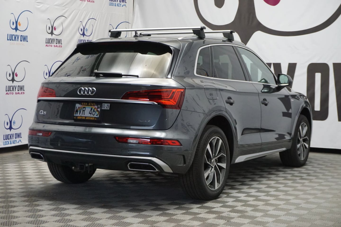A sophisticated adventure machine, our one owner 2023 Audi Q5 45 S Line Premium Plus quattro with low miles sets high standards for stylish performance in Daytona Gray Pearl! Motivated by a TurboCharged 2.0 Liter 4 Cylinder generating 261hp for a 7 Speed S Tronic Automatic transmission. This All Wheel Drive SUV also speeds from trail to town with dynamic handling and sees nearly 28mpg on the highway. Proudly showing off Audi's four rings on the front grille, our spirited sport-utility vehicle attracts attention with athletic S line details, LED lighting, a panoramic sunroof, exclusive alloy wheels, and a convenient power liftgate. Our S line Premium Plus cabin welcomes you to first-class comfort with heated leather power front seats, a heated multifunction steering wheel, tri-zone automatic climate control, keyless entry/ignition, and a virtual cockpit digital instrument cluster. It complements the easy-to-use 10.1-inch MMI touchscreen that supports Apple CarPlay®, Android Auto®, Bluetooth®, and a 19-speaker Bang & Olufsen sound system to create a high-tech environment today's owners love. Audi also takes a tech-focused approach to your safety by supplying automatic braking, adaptive cruise control with traffic jam assist, blind-spot monitoring, rear cross-traffic alert, lane-keeping assist, a surround-view system, and more. Prepare to explore excellence when you drive our Q5 S Line Premium Plus! Save this Page and Call for Availability. We Know You Will Enjoy Your Lucky Owl Auto Sales Test Drive Towards Ownership!