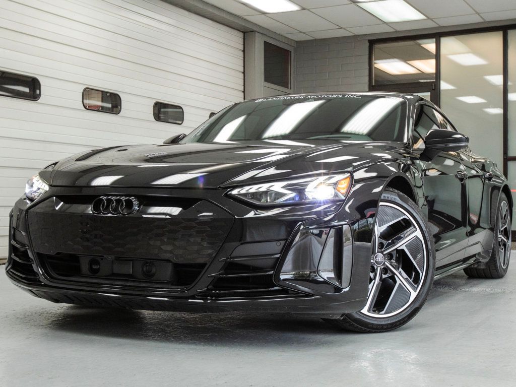 Exclusive & incredible top-of-line ultra-performance AWD EV sedan. Finished in Mythos Black Metallic over Black honeycomb-stitched fine Nappa leather interior with carbon fiber trim. Carbon fiber roof panel. Arbon Performance Package: Black Appearance Package plus. Gloss black exterior trim, black Audi rings & badges, illuminated carbon fiber door sill inlays, gloss carbon fiber side sill inlays, carbon fiber front & rear design elements. Animated matrix-design LED headlights with laser light. High beam assist. Full LED exterior lighting. Animated LED taillights. Dynamic front & rear turn signals. 20-inch gloss black 5-spoke-aero module design wheels. Tungsten carbonide coated brake discs with orange calipers. Adaptive air suspension. Power steering plus with rear-wheel steering. Adaptive cruise control with lane guidance. Intersection assist. Side assist (blind spot) with exit warning & rear cross-traffic assist. Pre-sense basic occupant protection. Pre-sense forward collision warning & avoidance assist. Front & rear park assist. Parking system plus. Backup camera. Top/surround-view camera system. Remote park assist plus: remote-controlled parking & unparking via smartphone app. Head-up display. Audi virtual cockpit plus. 12.3-inch digital-display instrument cluster. 10.1-inch center touchscreen. MMI navigation system plus w/ MMI touch. Apple CarPlay & Android Auto. Audi Connect navigation & infotainment. 16-speaker Bang & Olufsen premium audio w/ 710-watt amplifier. AM/FM HD radio. SiriusXM (sub required), USB, Bluetooth phone & streaming. Wireless phone/device charging. Advanced keyless entry & start/stop. Leather covered dash, doors, & center console. Front sport seats Pro package: heated & ventilated 14-way power front seats w/ massage & pneumatic-adjust leg & side bolsters. Front seats memory. Heated leather sport contour steering wheel. Carbon Atlas silk matte carbon fiber interior inlays. 3-zone climate control. Frameless auto-dimming interior mirror w/ digital compass display. LED interior ambient lighting. Black Dinamica microfiber headliner.
