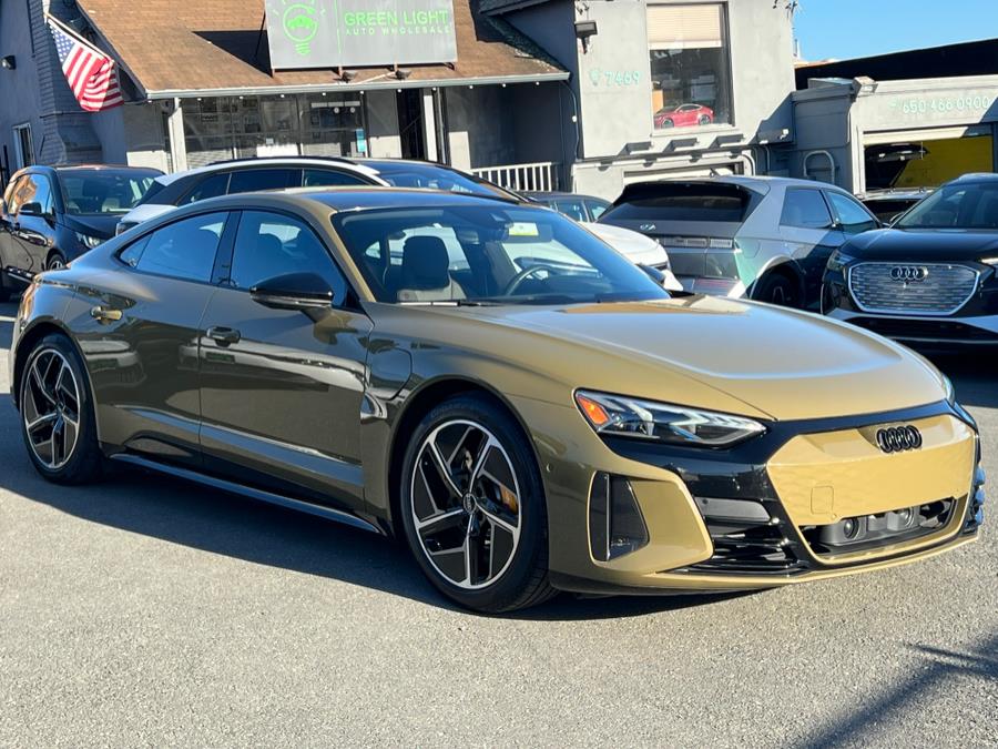 2023 Audi RS e-tron GT Prestige, available for sale in Daly City, California. This vehicle features a Tactical Green Metallic exterior with Santos Brown Leather interior. It is equipped with an automatic transmission and comes with a carbon performance package. The car has 36,898 miles and offers all wheel drive. Please confirm the accuracy of the specifications provided above with the dealer's representative.