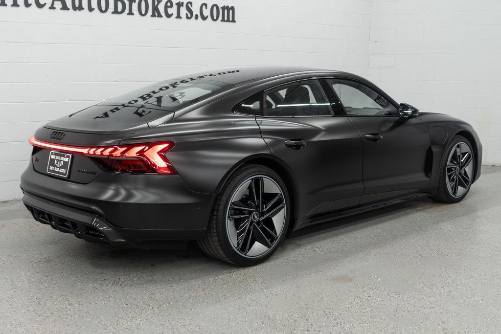Loaded! 2023 Audi RS e-tron GT Quattro with 16k miles. One Owner-Clean Carfax! Balance of Audi factory warranty 4 years/50k mi until January 2027. Showroom ready. This Audi was professionally wrapped in Satin Black (Daytona Gray Pearl Effect) exterior over Black leather interior and Matte Carbon fiber trim. Contact seller for details.