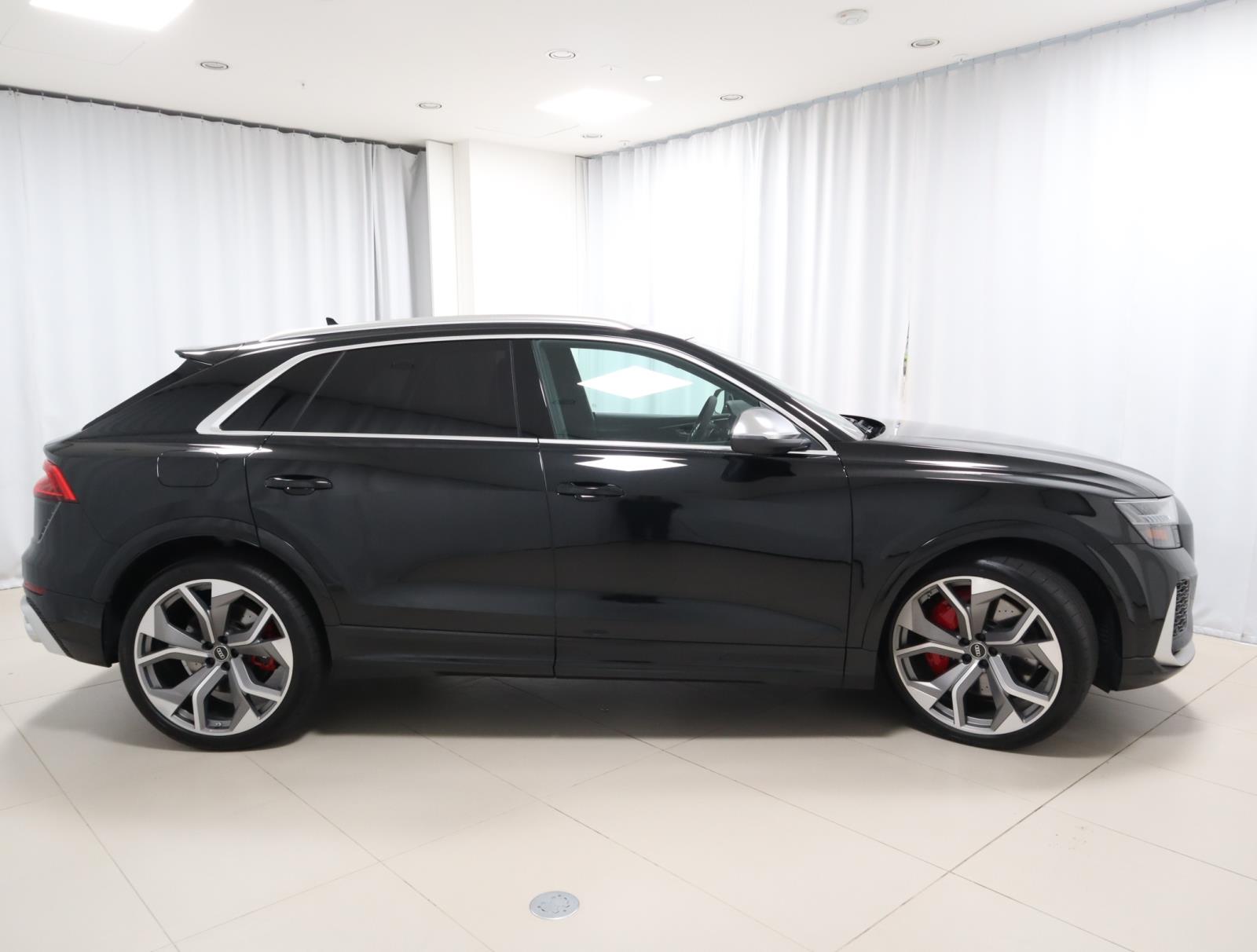 2023 Audi RS Q8 - Mythos Black Metallic | Executive & RS Design PackagesThis 2023 Audi RS Q8 delivers supercar performance wrapped in a luxury SUV, combining aggressive RS styling with everyday comfort and cutting-edge technology. Finished in Mythos Black Metallic over a Black interior with red stitching, this RS Q8 makes a bold statement from every angle.Power comes from Audi's hand-built 4.0L twin-turbo V8 paired with an 8-speed Tiptronic transmission and legendary quattro all-wheel drive, producing thrilling acceleration with total confidence. Advanced performance features include active roll stabilization, all-wheel steering, sport adaptive air suspension, and a sport rear differential for exceptional handling.Loaded with premium options, this RS Q8 features the Executive Package with head-up display, heated rear seats, soft-closing doors, dual-pane acoustic glass, and advanced driver assistance systems. The Luxury Package adds front seat massage and a Dinamica headliner, while the RS Design Package in Red enhances the interior with Alcantara accents, RS-branded details, and contrast stitching.Additional highlights include:23 RS wheels in matte titanium finish with summer tiresBang & Olufsen 3D premium sound systemValcona leather RS sport seats, heated and ventilatedPanoramic sunroofHD Matrix LED headlightsRed brake calipersTowing packageAudi Virtual Cockpit Plus and MMI Navigation with an original MSRP of over $136,000, this RS Q8 represents the pinnacle of vehicle.