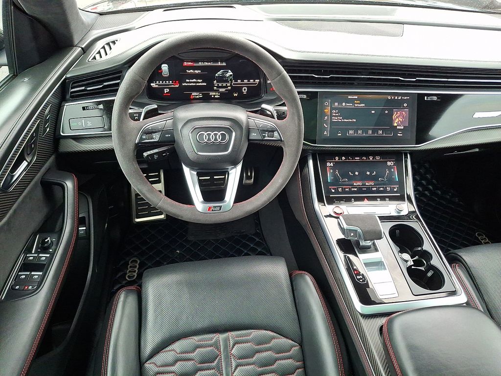 Elevate your driving experience with this exceptional 2023 Audi RS Q8 4.0T quattro. This high-performance SUV combines exhilarating power, advanced technology, and uncompromising luxury, making it the ultimate choice for those who demand the best. Boasting a potent 4.0L V8 Turbocharged engine that delivers an impressive 591 horsepower, the RS Q8 delivers thrilling acceleration and exceptional handling. The quattro all-wheel-drive system ensures superior traction and control, while the 8-speed Tiptronic transmission provides seamless and responsive shifting. This meticulously equipped RS Q8 is further enhanced by a host of premium features that elevate the driving experience. The panoramic sunroof, Bang & Olufsen premium sound system, and Audi MMI Navigation Plus with Touch Response provide unparalleled comfort and convenience. The heated and ventilated sport seats, heated steering wheel, and dual-zone climate control ensure you and your passengers enjoy every mile. The exterior of the RS Q8 exudes a bold and commanding presence, with the Black Optic and Carbon Optic Packages adding a striking, aggressive aesthetic. The 23-inch Audi Sport wheels and sport exhaust system with black tips complement the vehicle's powerful stance. Inside, the Valcona leather seating surfaces, Alcantara accents, and red contrast stitching of the RS Design Package create a refined and sporty ambiance. The intuitive Audi Virtual Cockpit and head-up display keep all the information you need right at your fingertips. Safety is also a top priority, with features like Audi pre sense, adaptive cruise control, and night vision assistant providing added peace of mind on the road. This 2023 Audi RS Q8 4.0T quattro is a true masterpiece of engineering and design, offering an unparalleled driving experience that will leave a lasting impression. I invite you to schedule a test drive and discover the exceptional capabilities of this remarkable SUV for yourself.