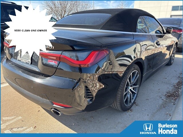 2023 BMW 4 Series 430i xDrive Jet Black 2.0L 4-Cylinder TwinPower Turbo 8-Speed Automatic Sport AWD 23/33 City/Highway MPG. CARFAX One-Owner. Clean CARFAX. This vehicle has been through an extensive multi-point inspection by an ASE Certified Technician. All necessary services have been done for the appropriate mileage interval as deemed necessary. We have also reconditioned this vehicle inside and out to provide you with as near a new car experience as can be expected from a vehicle of this year and mileage. Buy with confidence. Locally operated Dealership. Get Pre-Approved at the Burleson Honda Auto Finance Center. Free Vehicle History report. Large DFW Used Car Super Store. As a leading Honda dealer in DFW, our name has become synonymous with honesty and integrity. We have grown into one of the largest Honda dealers in the Dallas and Fort Worth area. We are proud to be integral members of the Dallas-Fort Worth community, where we serve the entire DFW Metroplex, including Burleson, Cleburne, Carrollton, North Richland Hills, Irving, Frisco, Richardson, Plano, Grand Prairie, Grapevine and the entire North Texas area.