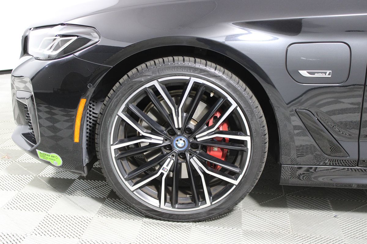 The 2023 BMW 5 Series 530e Plug-In Hybrid is a masterful blend of luxury, performance, and cutting-edge technology. Dressed in a sleek Black Sapphire Metallic exterior, this vehicle commands attention with its elegant yet sporty aesthetic. Its dynamic lines are further accentuated by the M Sport Package and Shadowline Package, reflecting BMW’s renowned craftsmanship and attention to detail. Complementing its striking exterior, the 20" x 8" front and 20" x 9" rear M Y-Spoke wheels and M Sport brakes with red calipers provide a robust and distinguished stance. Step inside, and you're greeted by a plush interior adorned in classic black, offering a seamless blend of comfort and style. The 2.0L 4-cylinder engine, combined with plug-in hybrid technology, delivers impressive efficiency and performance, guaranteeing a smooth and responsive driving experience. Connectivity is prioritized with features like Android Auto, Apple CarPlay, and wireless charging, ensuring you stay connected on the go. The addition of Bluetooth functionality and advanced FWD Collision Warning further enhances the vehicle's safety and convenience. Driver assistance is paramount, with features like a blind-spot monitor, parking assist, and lane departure warning, all working in unison to provide peace of mind on every journey. The climate-controlled haven features heated seats, offering warmth on cooler days while the rain-sensing wipers ensure excellent visibility in adverse weather conditions. The intuitive design is complemented by high-quality materials and finishes, creating an indulgent and inviting cabin. Embrace the future of driving with the BMW 530e Plug-In Hybrid, where innovation meets elegance in every mile.