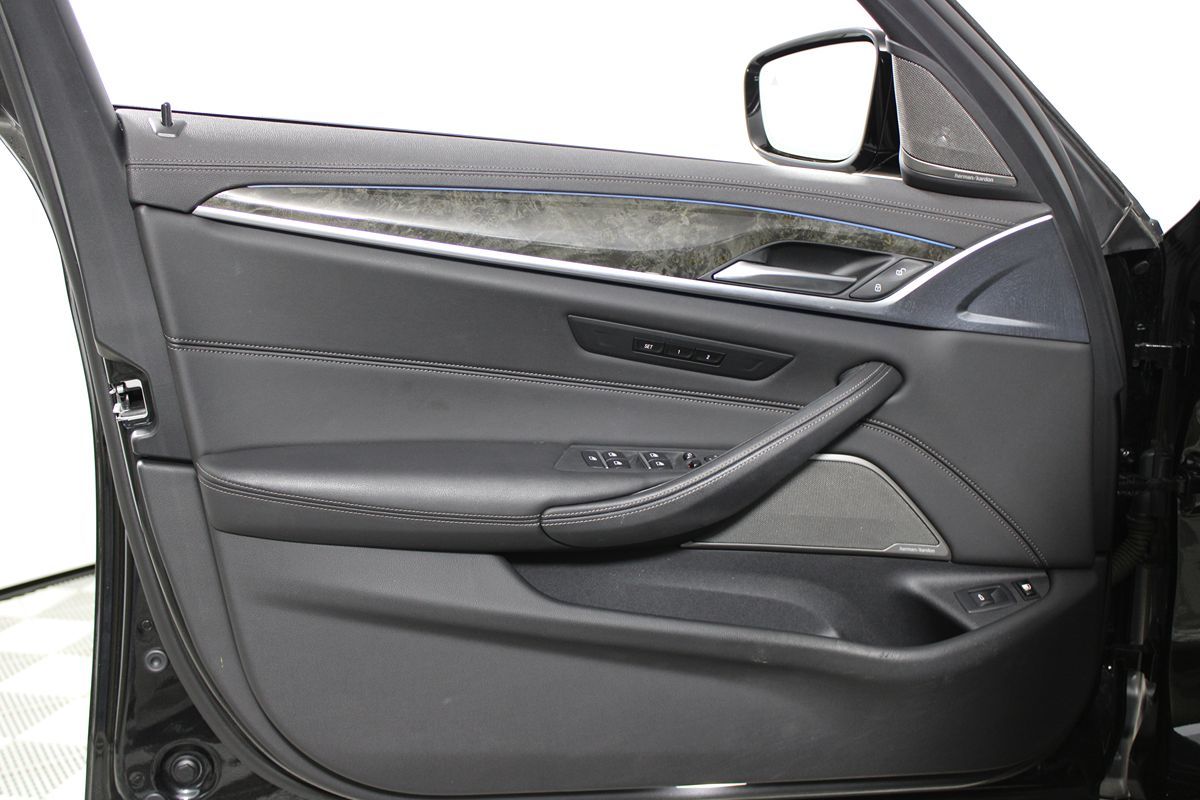 The 2023 BMW 5 Series 530e Plug-In Hybrid in Black Sapphire Metallic presents an elegant fusion of luxury and cutting-edge technology. Its sleek exterior, enriched with the Shadowline Package, complements the dynamic curves and agile stance, further accentuated by the stylish M Sport Package. When experienced from the driver's seat, this vehicle impresses with its harmonious blend of performance and efficiency, courtesy of its robust 2.0L 4-cylinder engine seamlessly supported by its hybrid technology. Step inside to discover an interior adorned with sophisticated Black Nappa leather upholstery, exuding premium comfort and craftsmanship. The Luxury Seating Package enhances the experience with heated seats offering unparalleled comfort for every journey. High-tech features abound, such as Android Auto and Apple CarPlay, keeping you seamlessly connected on the road, while a wireless charging pad ensures your devices stay powered without hassle. Stay assured with advanced safety features like the Blind Spot Monitor and Forward Collision Warning, complemented by the convenient Parking Assist for effortless maneuvering. The Heads-Up Display projects essential information onto the windshield, allowing you to maintain focus on the road ahead. Additionally, the Premium Package enhances driving pleasure with its intuitive functionalities, while rain-sensing wipers adapt instantly to changing weather, providing an unmatched driving experience in any condition.