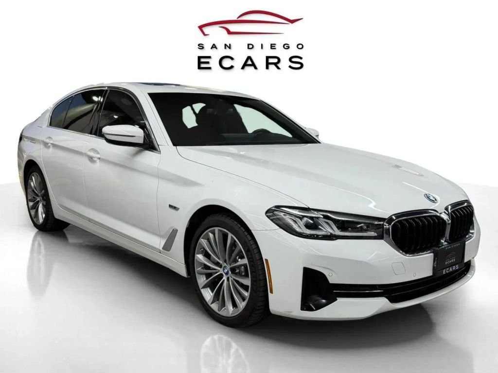 This 2023 BMW 530e Plug-In Hybrid blends executive luxury with electric efficiency and classic BMW performance. Finished in Alpine White over a Black perforated Sensatec interior this rear-wheel-drive 5 Series delivers refined styling advanced technology and impressive fuel economy. Powered by a turbocharged 4-cylinder engine paired with BMW's electric motor system and an 8-speed automatic transmission the 530e offers smooth acceleration with the added benefit of plug-in hybrid efficiency. The lithium-ion battery system provides seamless electric assistance while maintaining true BMW driving dynamics. Equipped with the Convenience Package this example features a power tailgate heated front seats power sport seats with lumbar support and memory settings. Technology highlights include Live Cockpit Pro with Navigation Apple CarPlay & Android Auto ConnectedDrive Services Hi-Fi 12-speaker sound system and dual LCD displays. Safety and driver assistance features include Active Blind Spot Detection Lane Departure Warning with steering correction Front Collision Mitigation Rear Cross Traffic Alert Park Distance Control front and rear and a backup camera. Exterior features include a power glass sunroof adaptive LED headlights with automatic high beams 19-inch V-spoke wheels and rain-sensing wipers. Dealer-inspected and exceptionally well equipped—a sophisticated plug-in hybrid sedan offering luxury performance and efficiency in one refined package.