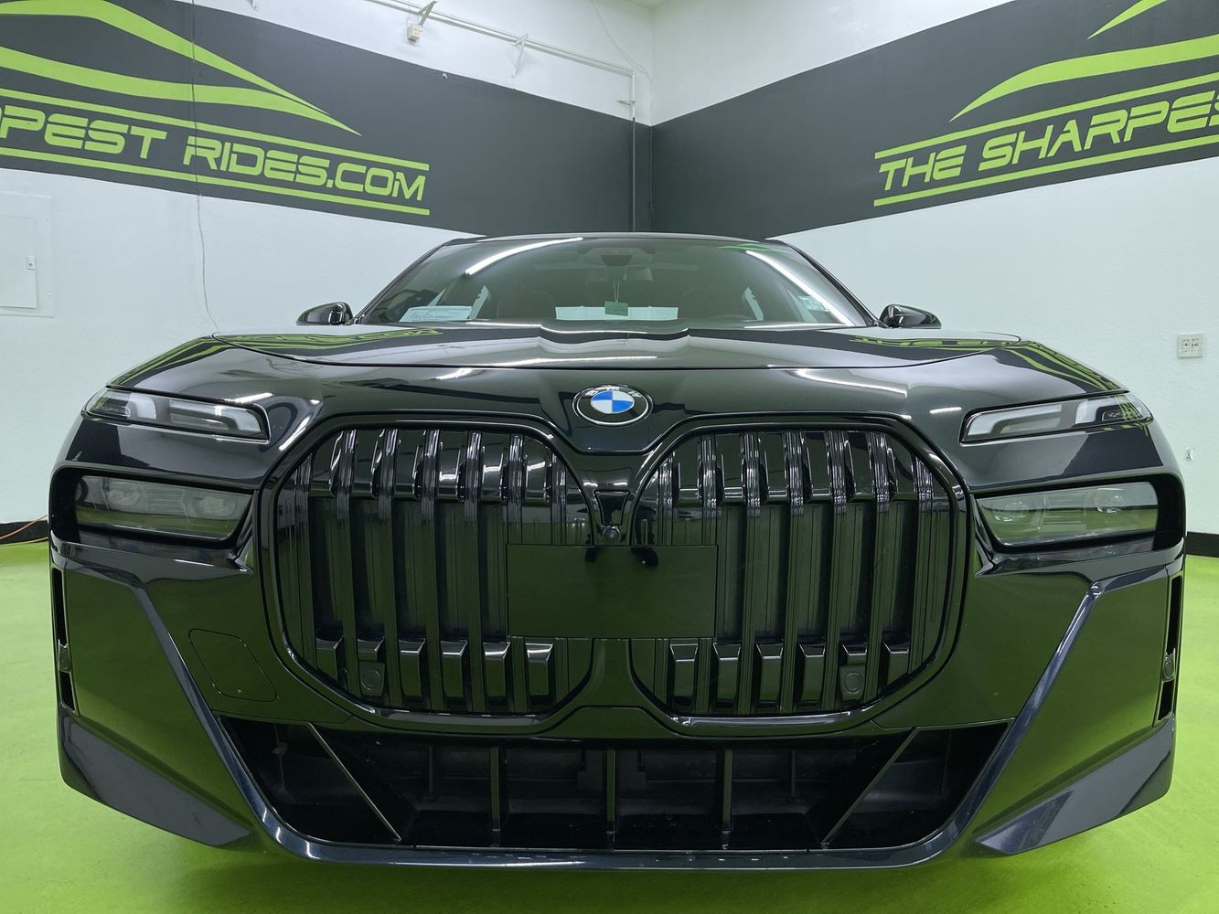 2023 BMW 7 Series i xDrive with AWD, M-Sport, leather, navigation, camera, and moonroof. This vehicle features a 4.4L 8-cylinder engine and a full-time all-wheel drive system. The interior is upholstered in Amarone leather and includes heated front and rear seats, a power tilting steering wheel, and ambient lighting. The exterior is Carbon Black Metallic. This model offers advanced safety features, a head-up display, and a premium audio system. The vehicle is equipped with the latest technology and comfort amenities for a luxurious driving experience.