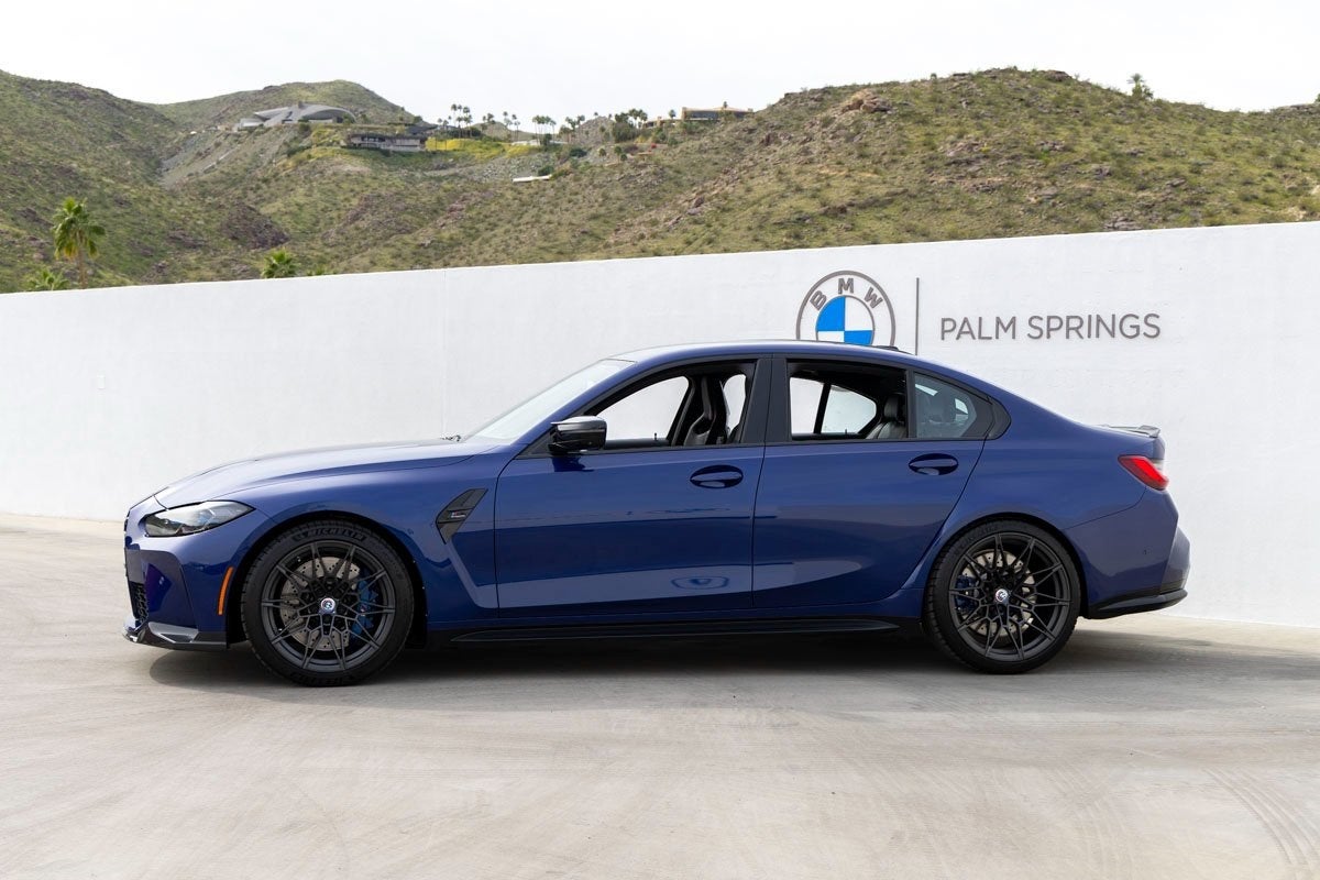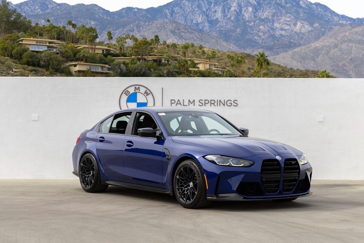 BMW of Palm Springs has available this BMW Certified Pre-Owned 2023 BMW M3 Competition, Tanzanite Blue II Metallic exterior, Custom Special Order Upholstery, 8Speed Automatic Steptronic transmission, equipped with a 3.0L I6 Turbocharged DOHC 24V LEV3ULEV70 503hp engine, odometer has 20,744 miles registered. This M3 Competition featuring M3 Edition 50 Jahre BMW M combines motorsportbred performance with refined luxury and cuttingedge technology. The bold exterior showcases Icon Adaptive LED Headlights with Laserlight, M Shadowline Lights, heated autodimming mirrors, a sporty spoiler, and aggressive 19x9.5 front & 20x10.5 rear M BiColor wheels (1T8). Functional design elements like carbon fiber trim and bodycolor bumpers reinforce its athletic stance. Inside, the driverfocused cockpit surrounds you with premium amenities and performance cues. M Carbon Bucket Seats wrapped in extended Merino leather provide excellent support, complemented by heated front seats, memory functions, and a heated sport steering wheel. A BMW HeadUp Display and BMW Curved Display keep essential driving information in view, while advanced connectivity from the Connected Package Pro ensures you stay informed and connected. The technology suite includes the harman/kardon Surround Sound System with 16 speakers and SiriusXM, Apple CarPlay & Android Auto compatibility, enhanced USB and Bluetooth with smartphone integration, wireless device charging, and a garage door transmitter. Comfort features like dualzone automatic climate control, rear air conditioning, rear window defroster, illuminated entry, compass, and outside temperature display round out the premium experience. Performance and handling are where this M3 Competition truly shines. The 503hp turbocharged inline6 propels you with exhilarating acceleration, while the Adaptive M Suspension, fourwheel independent suspension, speedsensing steering, and traction control deliver composed dynamics through every corner. Stopping power comes from robust M Carbon Ceramic Brakes and M Compound Brakes with black calipers, and driver confidence is enhanced by BMWengineered stability systems, ABS, and a comprehensive airbag suite. Advanced assistance features like Parking Assistance Package and Parking Assistant Plus with exterior cameras help in everyday driving scenarios. Safety systems include BMW Assist eCall, emergency communication, front and side impact airbags, knee airbags, and more. The M Drivers Package and Executive Package add further refinement and capability to this high-performance sedan.