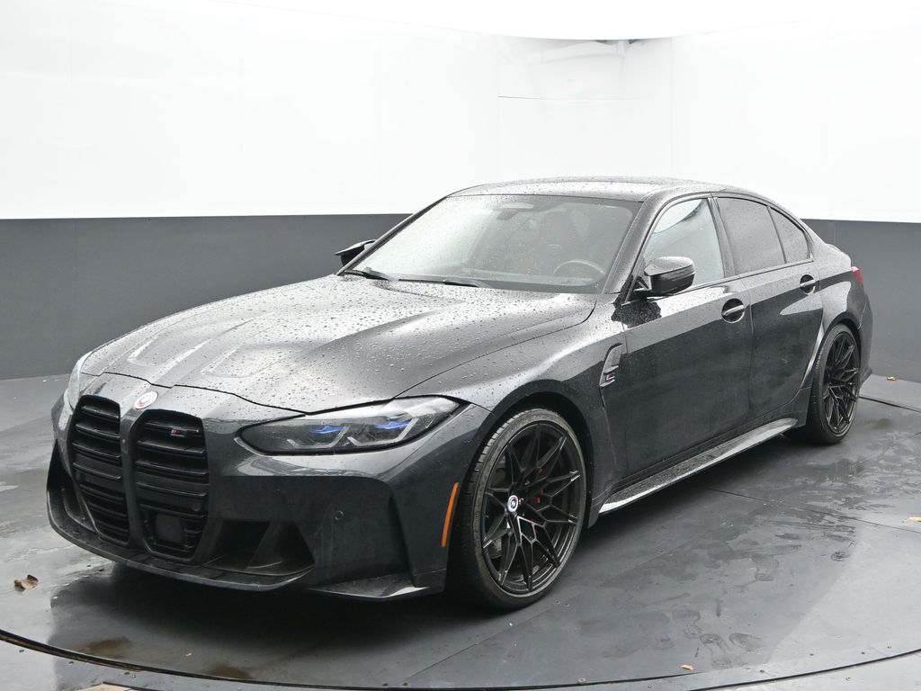 2023 BMW M3 Competition Black Sapphire Metallic AWD 3.0L I6 Turbocharged DOHC 24V LEV3-ULEV70 503hp. Recent Arrival! CARFAX One Owner. M Carbon exterior trim, premium Badging, and red brake calipers. Driving Assistance Professional with adaptive cruise control, blind spot monitoring, lane keep assist, and cross-traffic alert. Executive Package: heads-up display, heated steering wheel, remote engine start, full remote trunk release. Parking Assistance Package: automatic parking, surround-view cameras, rear parking sensors, backup camera, and aerial view display. Heated front seats and leather-trimmed bucket seats. Premium sound system. Navigation with Android Auto and Apple CarPlay integration. Cooled and ventilated front seats. Keyless entry and push-button start. 3.0L I-6 Twin Turbo engine, 8-speed automatic, xDrive all-wheel drive. LED headlights, rain-sensing wipers, rear spoiler, and aluminum wheels. Power front seats with memory and lumbar adjustment. Auto-dimming rearview mirror. Split folding rear seat and pass-through trunk. Multi-zone climate control, rear air conditioning. Traction control, stability control, and multiple airbags. Bluetooth, MP3 capability, and universal garage door opener. Wireless device charging. Ambient interior lighting and premium interior trim.