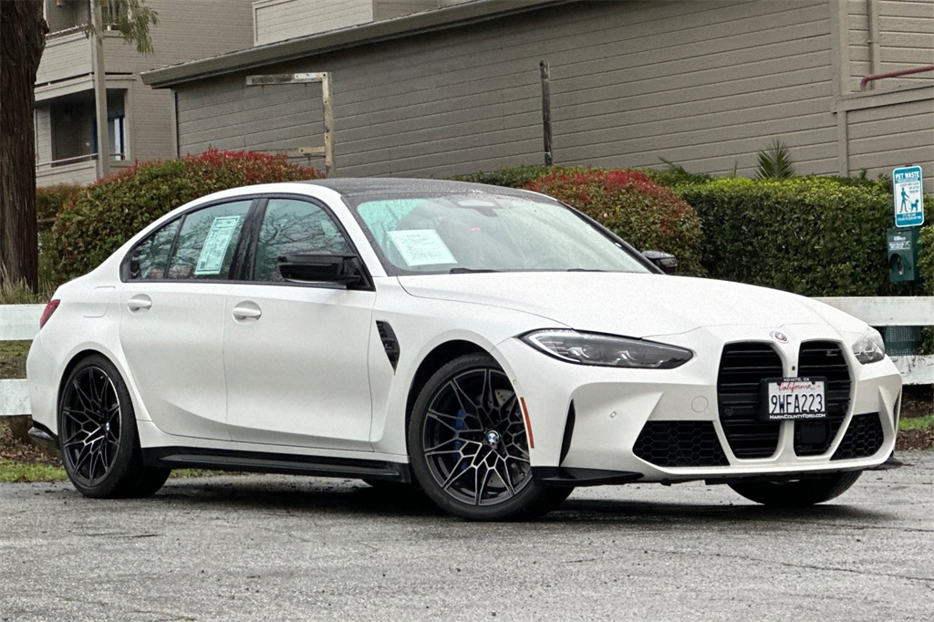 Take a look at this, recently traded in by a local customer, 2023 BMW M3 Competition xDrive sedan. She is simply stunning as her Frozen Brilliant White Metallic exterior perfectly compliments her Kyalami orange with black accented leather trimmed interior. This gorgeous girl has had and passed an extensive 182 Multi-Point Inspection conducted by our factory certified technicians. All necessary services have been done for the appropriate mileage interval including: Completed vehicle service changing engine oil and filter, Replacing the windshield wiper blades, Replacing the cabin air filter. In addition, this stunning vehicle comes equipped with two sets of keys, and is in excellent condition! Unique features to this vehicle include the optional Driving Assistance Package which includes Adaptive Cruise Control, Front Collision Mitigation, Lane Departure Warning. The optional Executive package which includes a Heads-Up Display, heated steering wheel and power liftgate to name a few features. Finally, on the interior, this particular car has the optional leather trimmed seats and more! Buy with confidence as each of our Pre-Owned Vehicles come equipped with a 90-Day/3000 Mile warranty as well as Car Doc, our exclusive maintenance and membership program. The included Car Doc Program comes with 6 Complimentary Oil Changes and 6 Complimentary Tire Rotations for the first two years of car ownership. Also, this vehicle is available to upgrade to a 3 Year or 5 Year Car Doc along with other perks to give you peace of mind when it comes to your driving experience. It's just what the doctor ordered! Whether you have good credit, bad credit or no credit get pre-approved today at: https://www.marincountyford.com/financin g/get-pre-approved.htm This vehicle won't last long at this price! We are a large used car super store serving North Bay Area, San Francisco. Please chat, email, text or call to verify any information in question and to schedule your product preview!