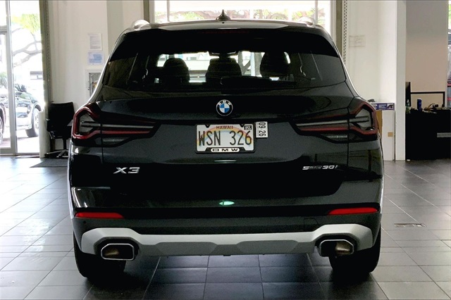 BMW of Honolulu proudly offers this beautiful 2023 BMW X3 sDrive30i in Black Sapphire Metallic with Only 17399 Miles! The X3 is powered by a 2.0L I4 TwinPower Turbo engine through a RWD system and an 8-Speed Automatic Sport Transmission. Call us at 808-376-4815 to schedule a showing of this BMW right now!
