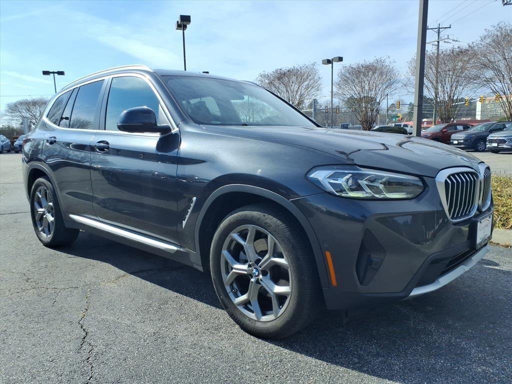 Why buy from Classic Nissan Williamsburg? When you choose this Dark Graphite Metallic 2023 BMW X3 xDrive30i with 37,416 miles, you are not just buying a used vehicle - you are investing in quality, reliability and peace of mind. Our clientele depend on us for transparent pricing, convenience and, most importantly, customer first service! No accidents! One owner! Forward collision mitigation is always looking ahead. Pedestrian impact prevention takes steps to avoid a collision. Smart device mirroring brings together safety and convenience by making it easier to find what you're looking for while keeping your eyes on the road. Apple CarPlay and Android Auto Compatibility smart device wireless mirroring. Mobile hotspot. Heated front seats. Heated steering wheel. Parking Assistance Package. Premium Package. Panoramic moonroof. Come on in to Classic Nissan Williamsburg today at 6390 Richmond Rd Williamsburg VA 23188 or call to schedule a test drive!