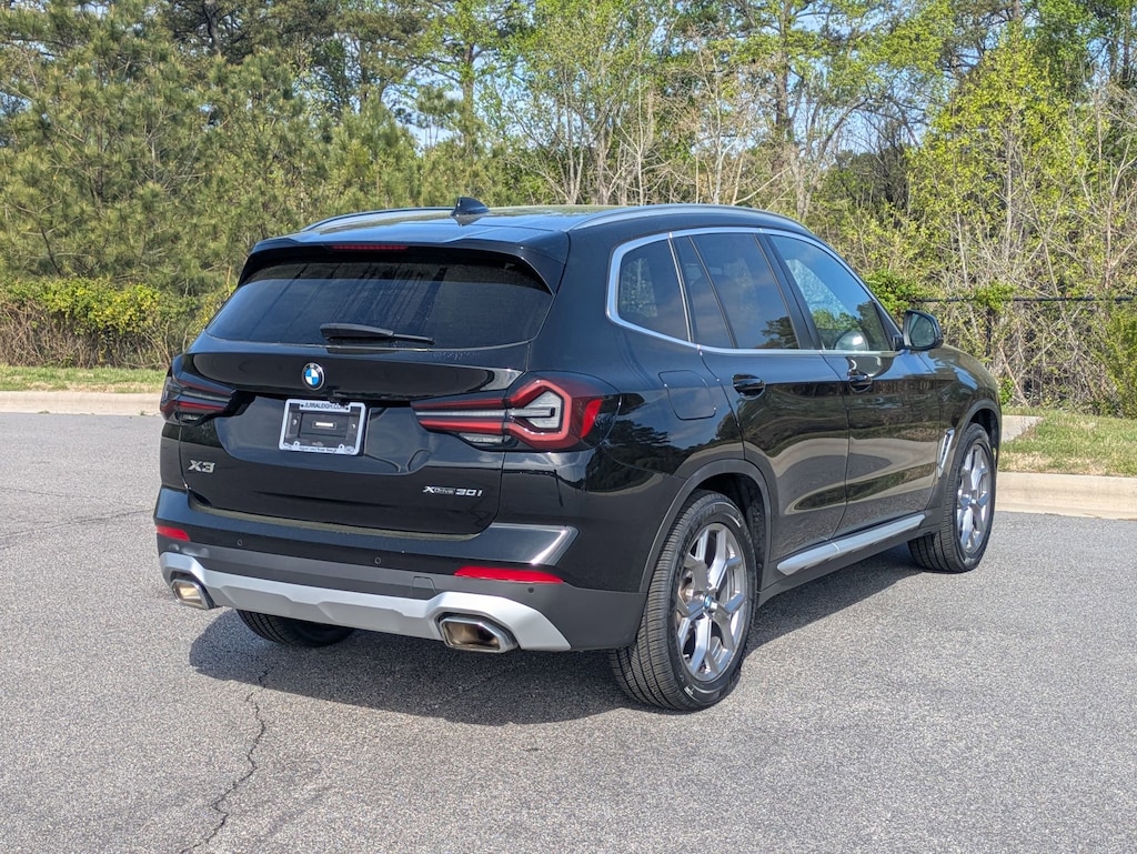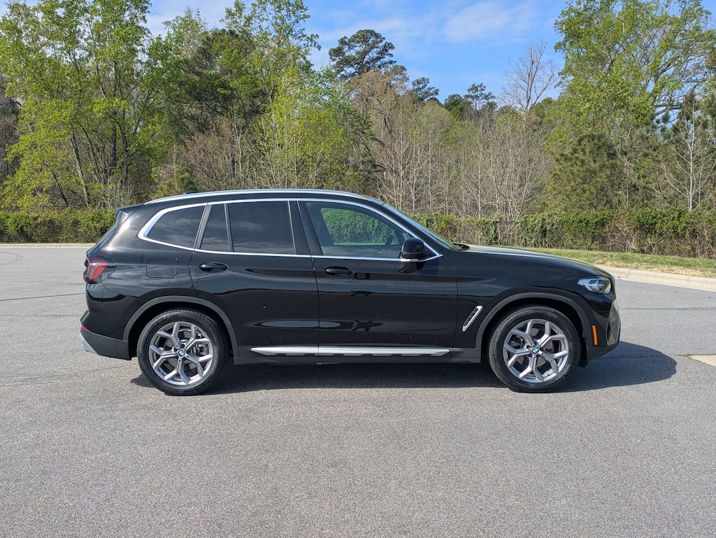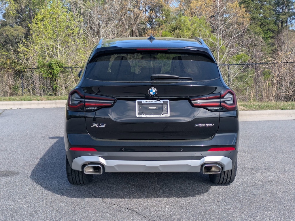 Clean CARFAX. CARFAX One-Owner. Jet Black 2023 BMW X3 xDrive30i AWD 8-Speed Automatic Sport 2.0L I4 TwinPower Turbo 1-owner, clean CARFAX, back up camera, leather, 8-Speed Automatic Sport, Connected Package Pro, Driver Lumbar Support, Heated Front Seats, Heated Steering Wheel, Live Cockpit Pro w/Navigation, Navigation, Navigation System, Panoramic Moonroof, Premium Package. We are more than just a dealership here at Jaguar Land Rover Raleigh. We are part of the Leith Automotive Group, and that means that we have access to almost 2,000 pre-owned vehicles. Our location puts us in the perfect place to help people of Raleigh, Durham, Chapel Hill, Apex, and all the surrounding areas with all their automotive needs. If you would like to request additional information about a specific vehicle, schedule a test drive or inquire about leasing or financing, please feel free to give us a call, send us an email or stop by and see us in person. Recent Arrival! Odometer is 14690 miles below market average! 21/28 City/Highway MPG. Call 919-746-8676 today to schedule your test drive! Peace of mind. Land Rover Cary is dedicated to your satisfaction before, during, and after your purchase. We'll go the extra mile to take care of you.