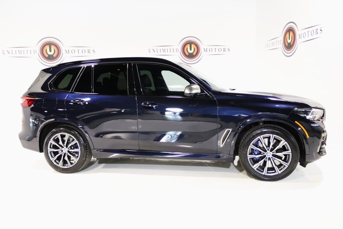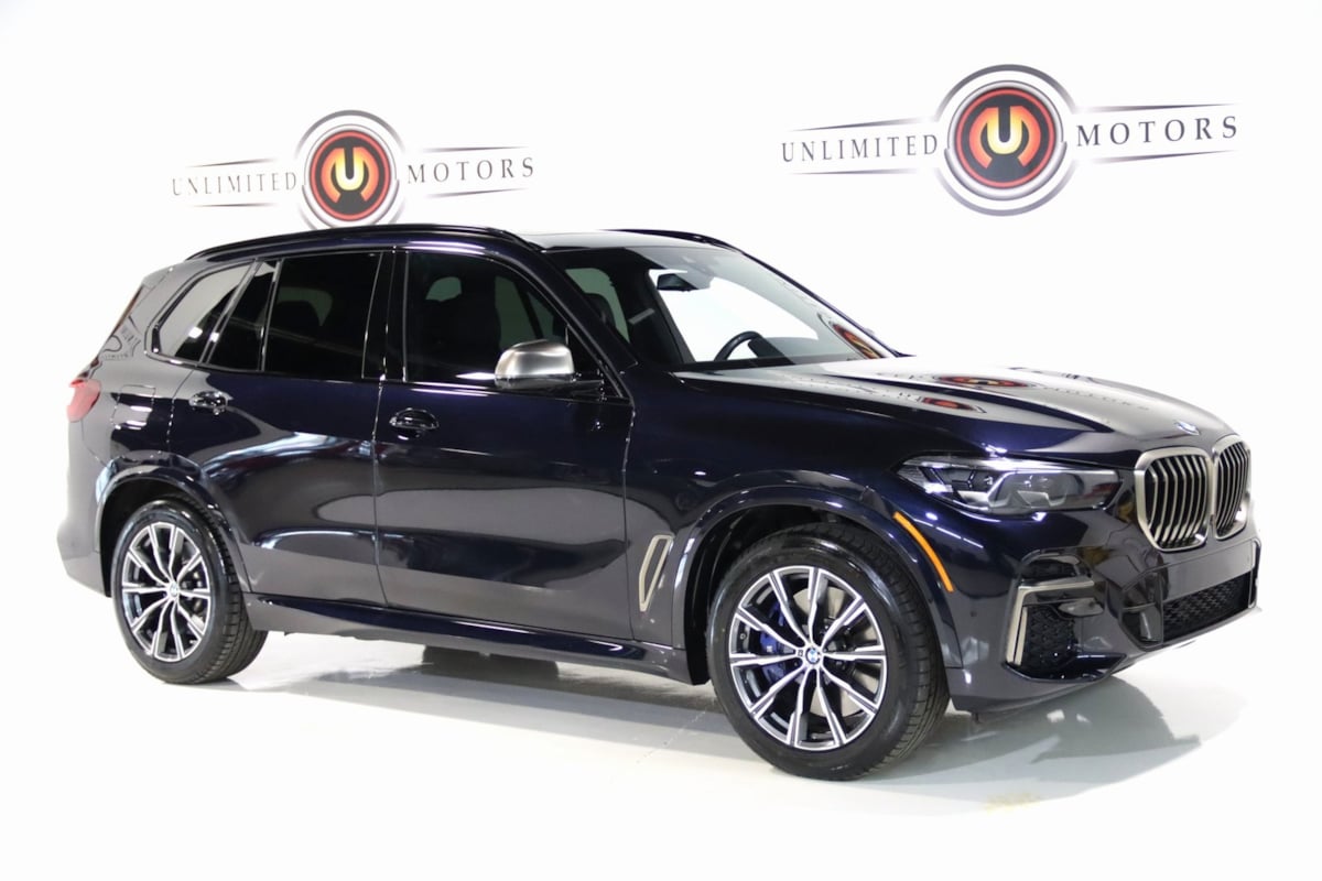 Navigation, Bluetooth, Back Up Camera, Panoramic Roof, Heated Seats, Touch Screen, 16 Speakers, 3.154 Axle Ratio, 4-Wheel Disc Brakes, ABS brakes, Active Park Distance Control, Adaptive suspension, Air Conditioning, Alloy wheels, AM/FM radio: SiriusXM with 360L, AM/FM Stereo, Auto High-beam Headlights, Auto tilt-away steering wheel, Auto-dimming door mirrors, Auto-dimming Rear-View mirror, Automatic temperature control, BMW Assist eCall, BMW TeleServices, Brake assist, Bumpers: body-color, Carbon Fiber Trim, Climate Comfort Package, Compass, Connected Package Pro, ConnectedDrive Services, Delay-off headlights, Drive Recorder, Driver door bin, Driver vanity mirror, Dual front impact airbags, Dual front side impact airbags, Electronic Stability Control, Emergency communication system: BMW Assist eCall, Exterior Parking Camera Rear, Four wheel independent suspension, Front & Rear Heated Seats, Front anti-roll bar, Front Bucket Seats, Front Center Armrest, Front dual zone A/C, Front reading lights, Front Ventilated Seats, Fully automatic headlights, Garage door transmitter, harman/kardon Surround Sound System, harman/kardon Speakers, Head restraints memory, Head-Up Display, Heated door mirrors, Heated Front Seats, Heated front seats, Heated Front Seats w/Armrests & Steering Wheel, Illuminated entry, Knee airbag, Leather Shift Knob, Leather steering wheel, Live Cockpit Pro w/Navigation, Low tire pressure warning, Memory seat, Multi-Contour Seats, Navigation System, Occupant sensing airbag, Outside temperature display, Overhead airbag, Panic alarm, Parking Assistance Package, Parking Assistant Plus. CARFAX One-Owner. Priced below KBB Fair Purchase Price! 2023 Carbon Black Metallic BMW 4D Sport Utility X5 M50i AWD 8-Speed Automatic Sport 4.4L V8 DOHC 32V Twin Turbocharged. Visit our website www.iumotors.com to view 100s of newer vehicles, more pictures and info, or to apply for financing. Rates are incredibly low for approved credit. We offer extended warranties, protection packages, and insurance. We assure you the best experience at any of our 4 locations and unbeatable prices and quality. At Unlimited Motors we believe in "Market Value Pricing’. We use real-time Internet price comparisons to constantly adjust prices to provide all buyers the best price possible. We do not mark them up to mark them down! Our entire team is committed to helping you buy a car the way we would want to buy a car! We utilize state-of-the-art technology to constantly monitor pricing trends to offer our shoppers the best competitive pricing, value and experience. We sell and service all makes and models of Pre-owned / Used Vehicles Used Cars.