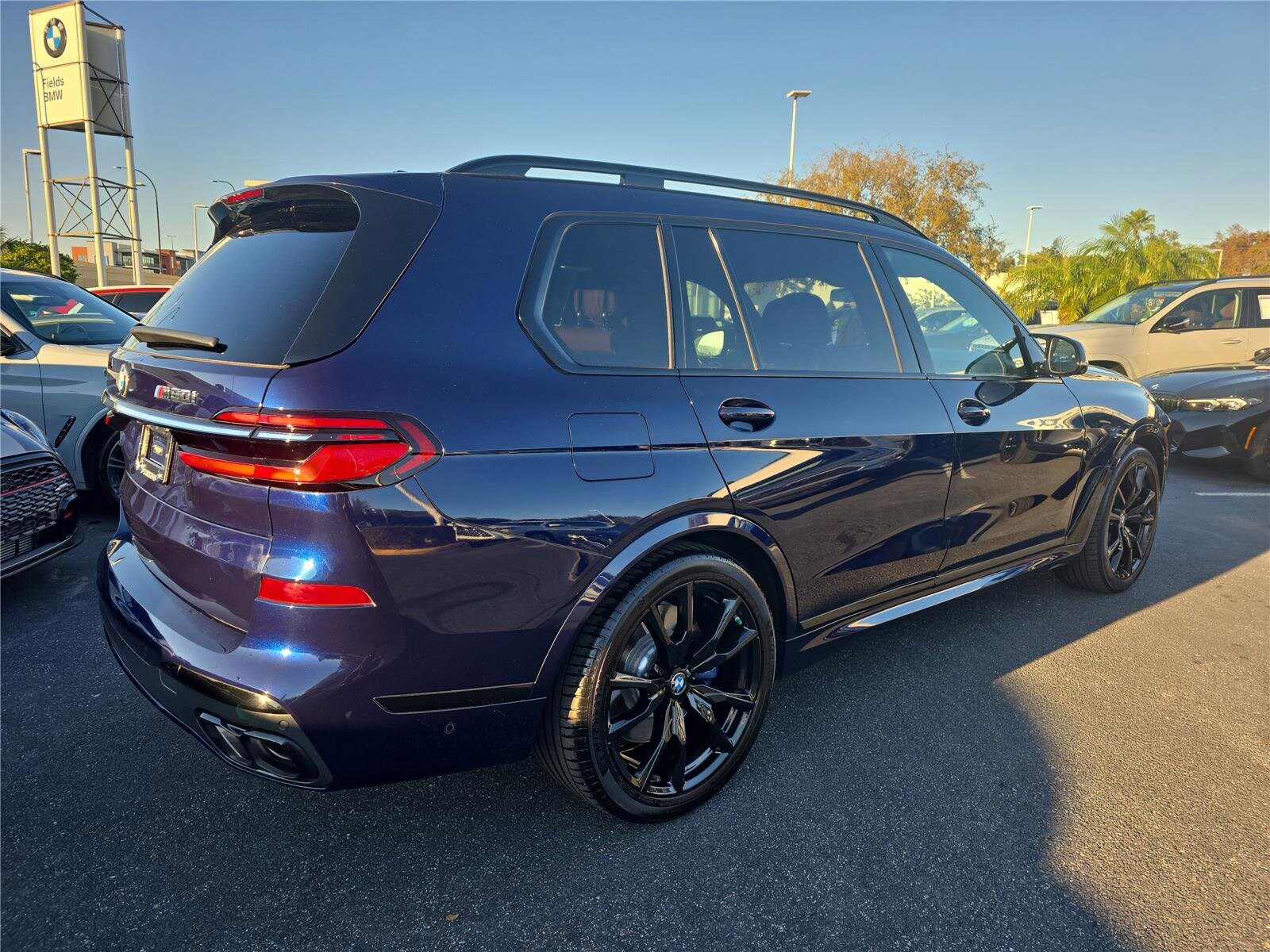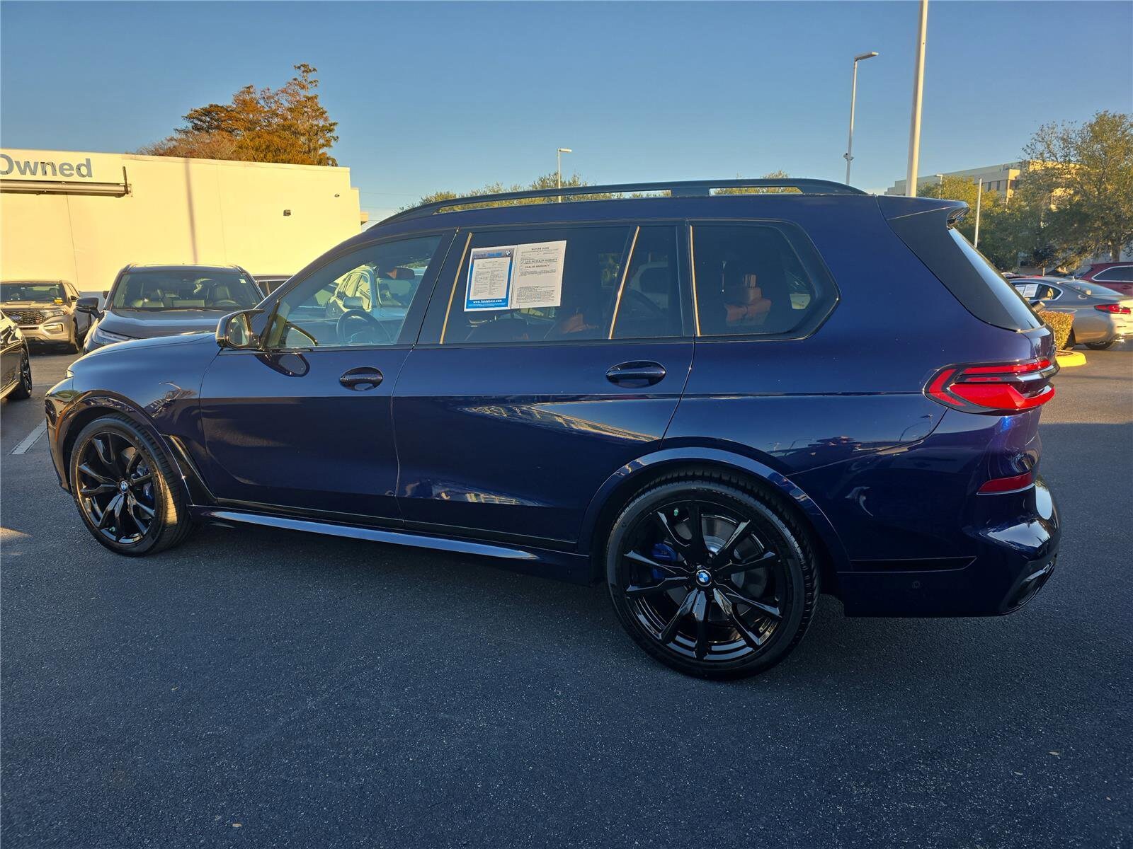 The 2023 BMW X7 M60i M60i Sports Activity Vehicle offers a blend of luxury and performance with a hybrid powertrain. Featuring a spacious interior with leather Merino upholstery, advanced technology, and a host of comfort and safety features, this vehicle is designed for both comfort and driving enjoyment. The Tanzanite Blue II Metallic exterior is complemented by a Tartufo interior, creating a sophisticated look. With 25,764 miles on the odometer, this used X7 is available at Fields BMW Winter Park.